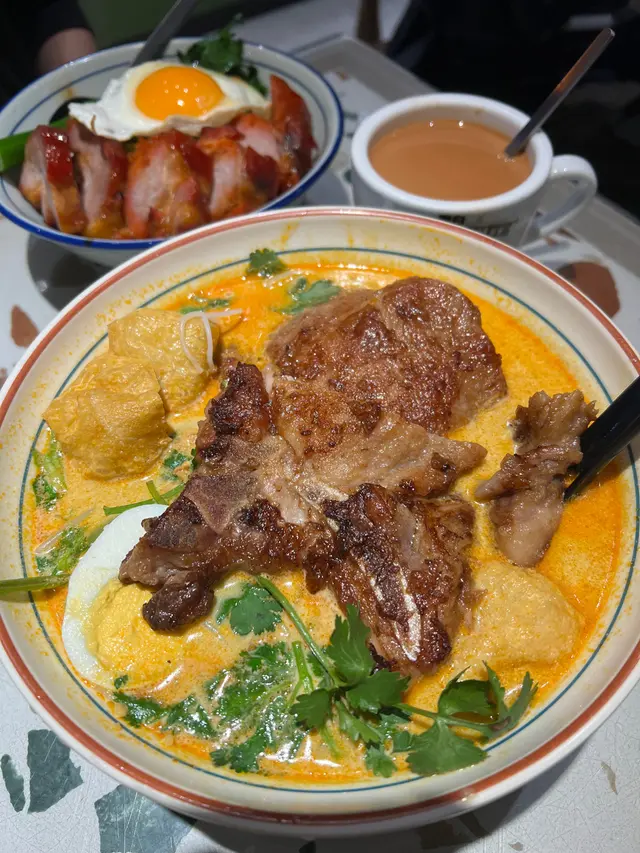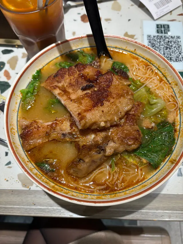 這間茶餐廳常常被推介,行完街去試試。去到下午茶,都要等但5分鐘左右有位,已經有運了。茶餐廳一般特式,坐位坐得比較迫。自己落單,自助斟水,沒有什麼服務需要。兩個沙嗲牛肉出前一丁麵/米粉加配凍奶茶,凍檸茶。好多牛肉,大大碗抵食。凍飲沒有死甜,奶茶有茶味。有用洗手間,地方整潔。送餐有效率,整體而言,值得一試。見有遊客,也有本地人,都有叫沙嗲牛肉麵及菠蘿包等。有些遊客叫叉燒飯(但食唔晒),可能只是打卡而已。…查看更多