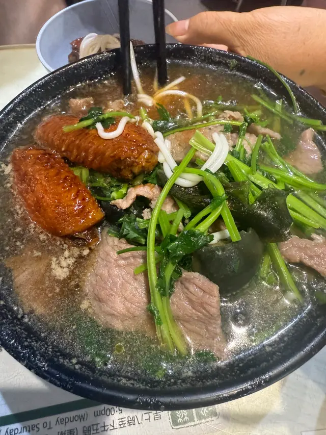 🇭🇰🍜🥢觀塘排隊粉麵店觀塘嘅呢間華嫂夜晚唔開門,每一日都只係做到5pm, 我星期六上晝11:30嚟到門口已經有人排緊隊,有好多內地遊客,但係都有本地人,唔算好多人排15分鐘左右就有得入。單人嘅話如果坐二人枱都要搭枱。✨qr code落單✅豬扒檳城喇沙湯 -$63豬扒份量好多!有4大片,舖滿了成個碗面,吾算薄而且吾會好韌。我點了米粉,也可以選米線/通粉,出前一丁、烏冬果d要+$3, 轉菜底嘅話要加$5。個喇沙湯都幾濃味,唔會好辣,有少少椰香味,都幾正。而且配料都幾多,有芽菜、豆卜、半隻烚蛋、芫荽、生菜,米粉我叫咗扣抵,但係份量都仲好多。下次試吓其他湯底。✅熱奶茶呢個麵餐本身跟一杯熱飲,凍飲要加$3。我叫咗杯奶茶,正正常常。…查看更多