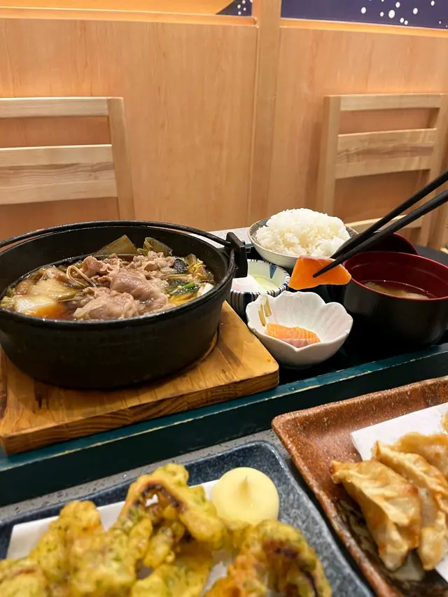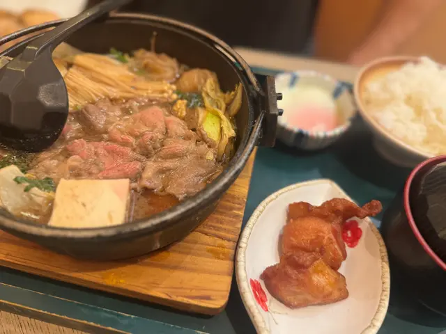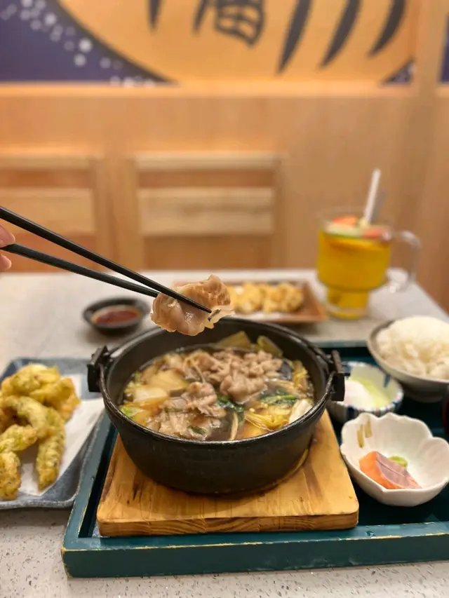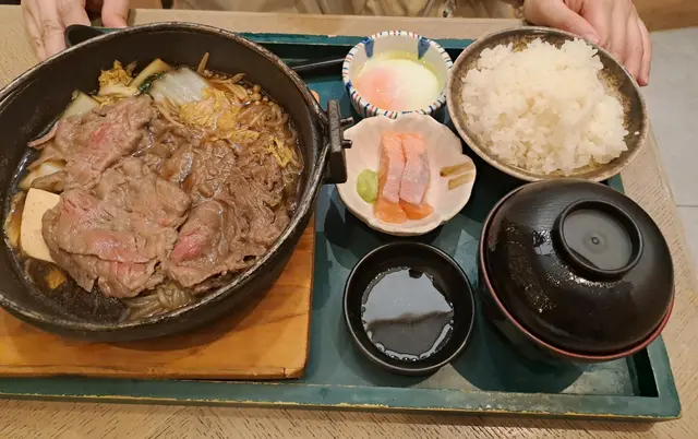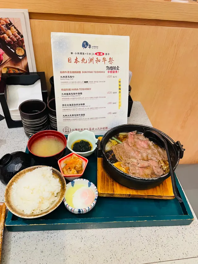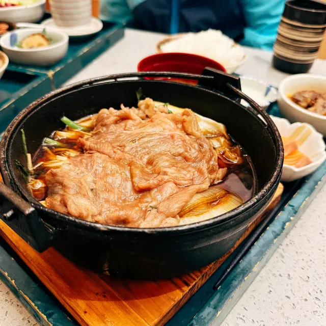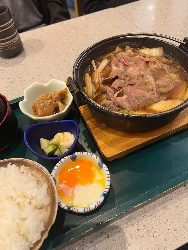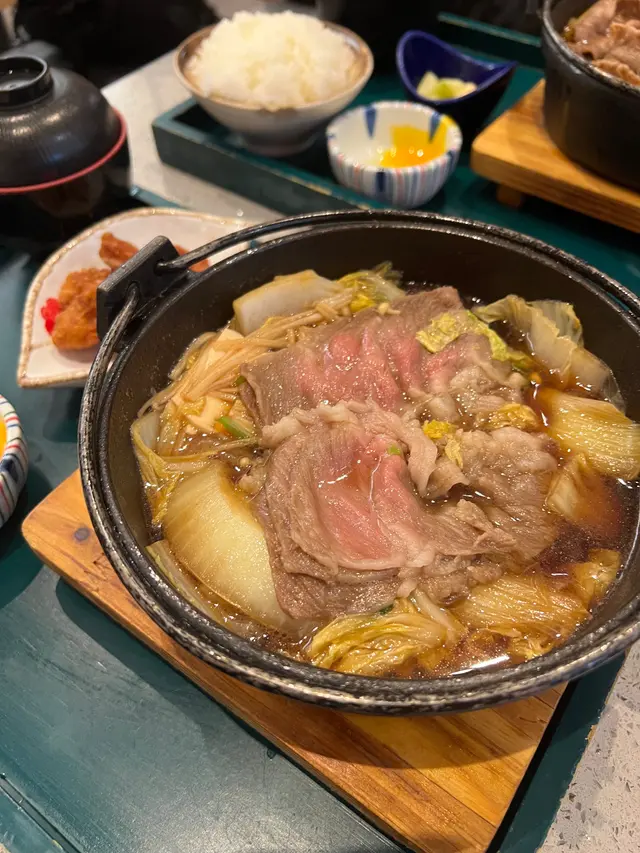 有日去迪士尼睇煙花之前想食啲嘢,去咗附近嘅青衣城揀咗間日本菜點咗佢哋嘅壽喜燒鍋御膳小食選擇有刺身或者炸雞,我選咗刺身,果然冇令我失望。刺身份量唔少,搭配少許醬油鮮嫩完全帶出海鮮嘅鮮味主菜方面,我揀咗熊本縣產黑毛和牛。雖然係套餐中最平價,但肉質好到令我驚喜。牛肉切得薄薄一片,煮熟時散發出一股誘人的香味,肉質鮮嫩多汁,咬下去感受到肉汁,再加上壽喜燒醬汁的甜味,令整個鍋嘅風味更加豐富。除了主菜,套餐仲包括飯、湯同埋一隻溫泉蛋。飯粒鬆軟,配合壽喜燒的湯汁,簡直係一絕。湯清淡卻有層次感,令人感覺好舒服;而溫泉蛋的滑嫩口感,正好中和了肉的油膩感,令整個用餐體驗更加完整。雖然依家最出名嘅係九宮格二人前,但對於只想食少少嘢嘅朋友,呢個壽喜燒鍋御膳真係一個好選擇。整體而言,味道絕對值得推薦,無論係想同朋友分享定係一個人享受,都非常合適!下次再嚟定要試下其他菜式!…查看更多