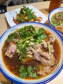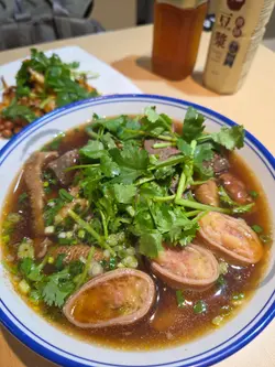 呢間車仔麵係唔少明星既愛店❗️終於有機會去試下,佢地好多唔同滷水既餸,中意食牛雜🐮/豬雜既朋友,就唔可以錯過🍜三餸車仔麵 $53(牛肉餅、豬腩肉、生腸、油麵)欣賞佢地啲餸都好特色,三個餸每樣份量都好多吓💯😎,湯底叫全部汁(顧名思意咩都有、腩汁、沙嗲汁、咖喱汁、辣汁🌶️等等🫶🏻),湯底都好惹味,下次可以試中辣😍配料方面,牛肉餅真爆汁💦,豬腩肉🐷肥瘦均勻,生腸夠肥夠入味😋,可以話係大件夾好食之選🐮牛雜河 $48黎到梗係試下佢地既滷水牛雜,揀左滷水加腩汁湯底🍴牛雜好入味,有牛肚、牛肺、牛膀、牛大腸,洗得乾淨無怪味同苦味👍🏻,足料份量多,落埋腩汁更加提鮮,高質牛雜河👍🏻🉐食辣既朋友都可以加佢地個招牌辣油🦐太陽餅(蝦餅5件) $45呢個蝦餅好特別,上下有塊皮夾住蝦膠同有原隻鮮蝦😍出面脆口、裏面彈牙有蝦味,幾好食🤤🦑新鮮魷魚鬚 $52魷魚份量都幾多,用秘製辣醬撈埋,香辣惹味,仲有花生好香口,魷魚好爽口新鮮👍overall:各樣嘢食都好出色,值得大家一試👍餐廳都幾大,而且座位都好闊落,味道同款式都食得出餐廳對食材幾有要求,大家嗎喺尖沙咀想搵車仔麵食,不妨考慮一下…查看更多