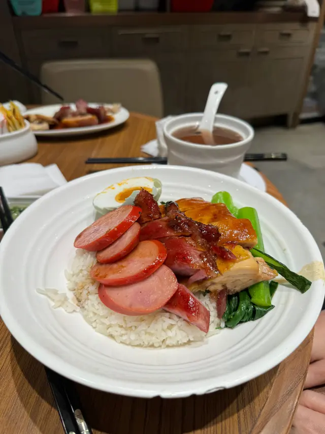 一心想在中環食個燒味飯. 原本想去一樂, 不過人又多又貴, 伙記態度麻麻. 見呢間都有人排隊, 諗住實冇事. 首先環境係OK, 伙記服務態度算係好好, 有問有答. $85一個燒味餐, 凍飲加個例湯都係$111. 叫左個义鵝飯, 係加左15元先有得食鵝. 點知......... 啲鵝只得皮同肥肉, 6舊係完全冇肉. 真係好失望. 义燒係OK. 心諗早知叫鴨仲可以慳番15元. 見周圍其他人都係冇叫燒味...... 可想言知. 後來同收銀反映, 佢好有禮貌話... 你出聲嘛, 換過俾你...... 我都好無奈.…查看更多