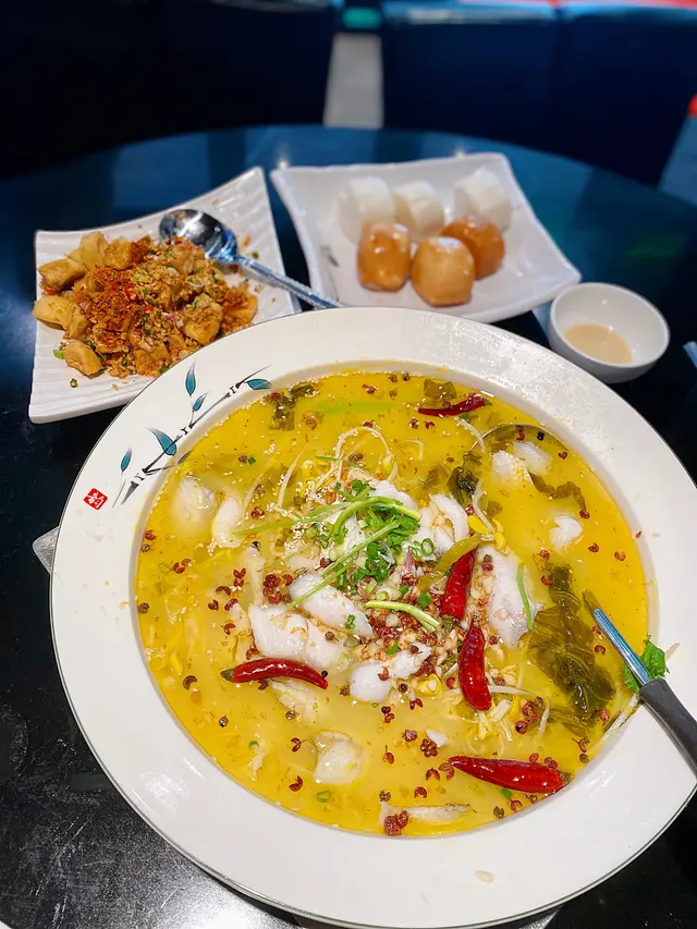 北角有新川菜店💕 必點酸菜魚 香辣麻重 味道平衡得剛好 感覺正宗!酸菜魚 (小) $208: 我同朋友唔太食得辣,揀咗小辣加薯粉 $28桂花魚好滑溜,配上酸菜、萵筍及金菇好豐富,而且湯底一啲都唔油膩,食完唔會辛苦!金銀饅頭 $52: 蒸及炸饅頭各三件,炸饅頭外脆內軟 唔油膩👍🏼椒鹽豆腐 $78: 炸得夠乾身香脆 有好多辣椒及炸蒜等😁 夠香口惹味~紅糖冰粉 $28: 食完辣同熱氣嘢食返碗紅糖冰粉,可以降下火🤭 涼粉好滑溜,配紅糖、花生粹及提示乾,非常清爽!酸梅湯$12查看更多