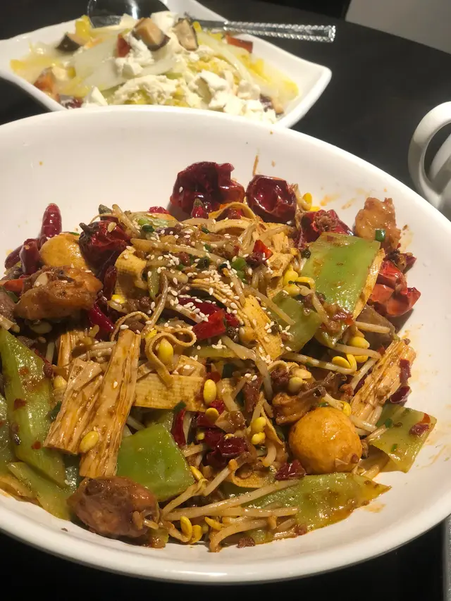 位於北角明園西街< 𝐇𝐮𝐚 𝐋𝐢 𝐂𝐡𝐮𝐚𝐧 𝐂𝐮𝐢𝐬𝐢𝐧𝐞 >, 一間川菜餐廳, 主打多款川菜菜式, 亦設有平價兩人餐, 環境亦寬敞。兩人餐 $³⁸⁸香蔥雞蛋豆乾粒 口感及味道像是豆腐乾, 重蛋香, 再散上香蔥, 很好吃呢。麻辣雞煲雞件肉質嫩滑, 配有濃郁惹味麻辣醬汁, 爆煮入味, 份量十足。小炒肉原汁原味, 更能突出肉香及青椒香, 充滿濃濃鄉土味。酸辣士豆絲清爽惹味。冰粉兩碗解辣一流。華麗川湘館 (北角)📍北角明園西街6號地舖查看更多