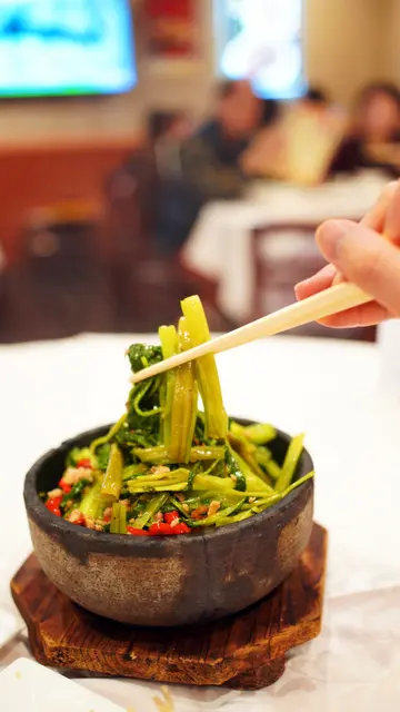 這食店一向生意不錯,這晚也是顧客眾多。這晚我們點了:海蜇燻蹄(小食) :海蜇爽口彈牙,燻蹄的肉質也可以,但是兩者的味道都偏淡,附上的白醋太甜,而且酸味不足。北菇扒時蔬:這小菜味道不錯,而且份量頗大,但是北菇不夠柔軟。蒸南非鮑魚:鮑魚算是大隻,但是沒什麼鮮味。蒸蟶子王:蟶子皇也頗大隻,但同樣鮮味不足。龍仔蒸田雞飯:蒸籠大得嚇了我們一跳,但是結果卻吃剩了一大半。因為田雞沒有鮮味,田雞上面的芡汁更是過鹹。以前也曾光顧這菜館,印象頗佳,可是這晚卻令我們失望。