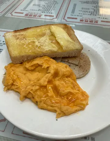 炒滑蛋都普普通通,沒有什麼特別,不過滑都夠滑,多士都算帶點牛油,味道尚可,如果大概$50個常餐嘅話就太貴。不過始終佢係位於呢啲路口中間,門口都有三兩張枱,因此啲乘客如果喺門口進食,大多都會變吸煙,因此建議不喜歡的人是不要坐近門口的位置
