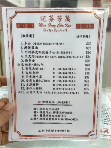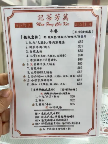 今次去咗‘元朗萬芳茶記’食早午餐,叫咗個‘常餐’黎試吓我用咗唔同嘅角度去分析一下今次嘅餐飲體驗。份量:正常,唔會太飽。味道:辣沙甸魚有一條半,辣度十足相當惹味。公仔麵煮得啱啱好,彈牙唔會太腍。加咗$4叫咗個火腿奄列個蛋煎得相當好食,如果鍾意食熟蛋嘅人會相當喜歡,咬入去亦都有蛋汁滲出嚟,整體個火腿奄列亦唔會太油,好好食。牛油餐包正常發揮。整體上唔會太鹹,亦唔會太油,相當推介。餐飲:凍檸茶走甜正常發揮上餐速度:茶餐廳速度上菜店員態度:良好店內環境:茶餐廳有分店外店內座位,雖然坐在店內,但係坐喺店內嘅人食煙亦相當困擾,聞到煙味亦是美中不足之處,雖然知道無法避免。人均消費:$49改善方案:希望下次嚟食,聞唔到煙味,而味道方面無需再改善,因為已經好好味。下次希望試吓濃湯沙嗲牛公仔麵。…查看更多