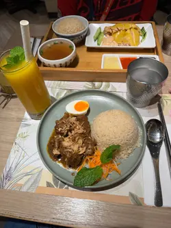我約好友去位於樂富聯合道198號樂富廣場A區1樓1104至1105號舖的“蒲羅”食下午茶餐,環境舒適,裝修雅緻,好有東南亞風情。我哋點咗:🥢海南雞飯配油飯$62:雞肉嫩滑好食,油飯好味。🥢順化香茅豬扒飯$53:豬扒外脆肉嫩,香茅清香。🥢馬來咖哩牛腩配白飯 $60:牛腩軟淋入味,咖哩好味。🥢峴港炸蝦餅 $28:蝦餅炸得香脆可口。🥢椰汁紅豆冰 $12:椰汁清香,紅豆軟綿,清涼美味。🥢熱咸桔水(跟餐):清潤好飲。