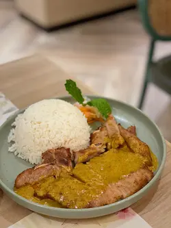 呢排對新加坡菜 有種莫名其妙嘅興趣🤣放工見到就求其入左呢間 又有啲驚喜喎呢到既晚餐幾抵食 一個晚餐包小食同餐飲🤭今晚食左順化湯檬 同 馬來咖喱厚切豬扒配白飯順化湯檬 湯底微辣 唔會太油 幾惹味😻配料亦好足料 有牛展 扎肉 扎蹄同牛肉丸馬來咖喱厚切豬扒 好大塊 幾鬆軟 唔會韌🤩配埋佢地既咖喱汁送飯 唔會太咸岩岩好🤭另外仲叫咗街頭雞肉串燒 同 咸蛋黃魚皮雞肉串燒燒得好好 一啲都唔會柴 惹味🤣鹹蛋黃魚皮上枱非常脆卜卜 熱辣辣鹹蛋黃醬煮到起砂 配埋一齊食好滿足🤩大家黎到要試下佢地既南洋白咖啡好香好滑 仲可以嗌少甜 呢杯有驚喜😛