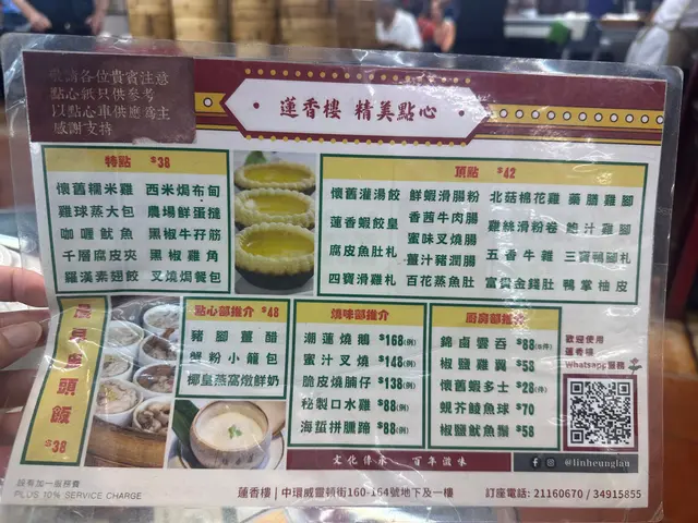老字號「蓮香樓」重開新概念,一方面保留傳統,朝6晚10,店舖格調保留原有懷舊特色及文化,沿用舊式手推點心車,但現在有夜茶飲,半自助形式。晚上點心大部份一律$48。客人需走到點心車選擇點心,然後自取返回座位,晚上沒有腸粉供應。吃了這幾款點心,整體水準不俗。火龍果帶子餃有創意,胡椒豬肚湯夠辣。火龍果帶子餃 $48蓮香蝦餃王 $48碗仔翅 $48韭菜豬紅 $78胡椒豬肚湯 $78鹹蛋黃燒肉 $98賣相非常吸引,鹹蛋黃釀在燒肉中,香惹昇華,燒肉皮脆肉肥美。滑蛋蝦仁炒河 $168點了一款炒粉麵,夠鑊氣,味道唔錯。椰汁燉燕窩 $52蛋撻 $48吃了兩款甜品,椰汁燉燕窩,甜度適中,蛋白夠滑,燕窩在頂,吃得滿足!茶錢每位$18。運作流暢,店舖相比從前清潔整齊,性價比之選。 #蓮香樓 #中環 #粵菜 #廣東 #點心…さらに見る