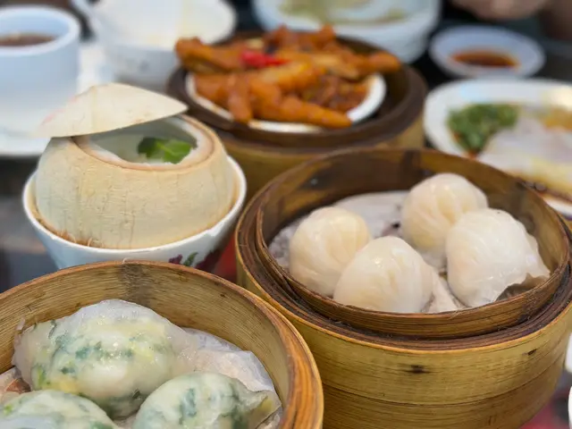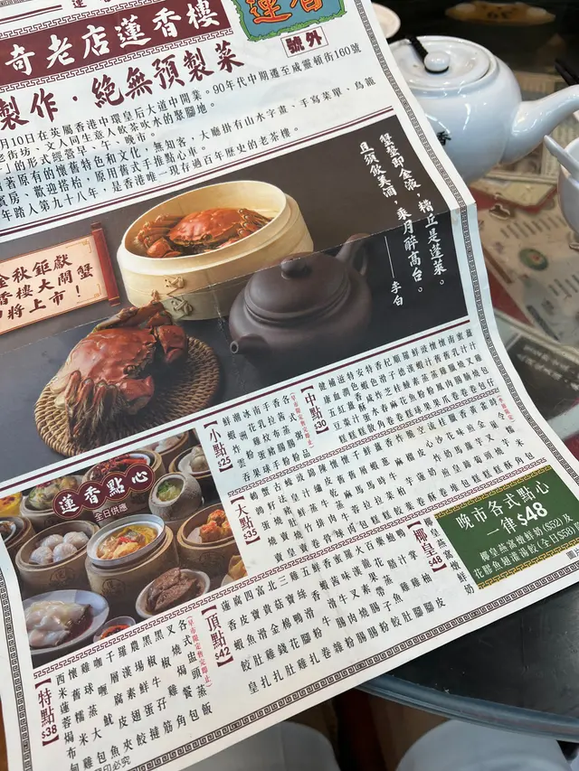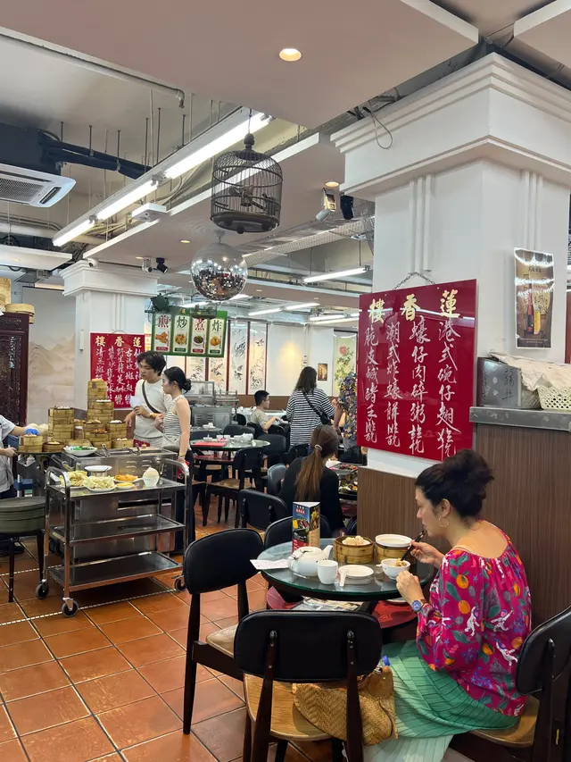 老字號「蓮香樓」重開新概念,一方面保留傳統,朝6晚10,店舖格調保留原有懷舊特色及文化,沿用舊式手推點心車,但現在有夜茶飲,半自助形式。晚上點心大部份一律$48。客人需走到點心車選擇點心,然後自取返回座位,晚上沒有腸粉供應。吃了這幾款點心,整體水準不俗。火龍果帶子餃有創意,胡椒豬肚湯夠辣。火龍果帶子餃 $48蓮香蝦餃王 $48碗仔翅 $48韭菜豬紅 $78胡椒豬肚湯 $78鹹蛋黃燒肉 $98賣相非常吸引,鹹蛋黃釀在燒肉中,香惹昇華,燒肉皮脆肉肥美。滑蛋蝦仁炒河 $168點了一款炒粉麵,夠鑊氣,味道唔錯。椰汁燉燕窩 $52蛋撻 $48吃了兩款甜品,椰汁燉燕窩,甜度適中,蛋白夠滑,燕窩在頂,吃得滿足!茶錢每位$18。運作流暢,店舖相比從前清潔整齊,性價比之選。 #蓮香樓 #中環 #粵菜 #廣東 #點心…查看更多