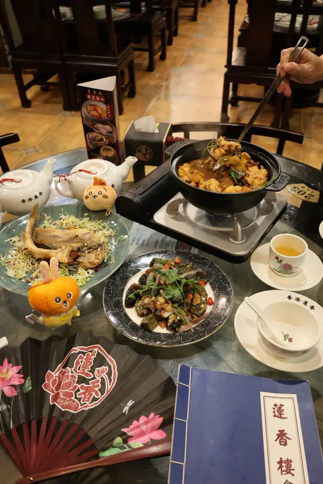 蓮香樓今日去咗一間歷史悠久嘅酒樓食點心,好耐都冇見過用人手推嘅點心車,懷舊風格裝修,保留咗傳統嘅茶樓文化,酒樓食物質素高,價錢合理海蜇青瓜 青瓜清脆爽口,海蜇的鮮美,入口爽口彈牙,煙煙韌韌,加上青瓜的清新,口感清爽,加了紅油入口有點兒辣味雞扎 皮薄餡多,腐皮包了雞髀肉,火腿,魚漂,新鮮淮山,入口雞肉嫩滑,味道鮮美,口感香脆,與吸收了鮮味,入口香甜多汁蝦餃 薄皮包裹著鮮蝦肉餡,透明的外皮,入口煙煙韌韌,鮮蝦肉味道鮮甜,而且爽口彈牙,一口一啖,非常美味咖喱魷魚 魷魚肉質彈牙,咖喱醬香濃,帶有微辣的味道,底層鋪滿了蘿蔔,入口多汁清甜,而且濃香的咖喱味椰汁蛋白燉雪燕 甜而不膩的椰汁搭配蛋白,口感滑潤,入口即溶,雪燕的清香,口中陣陣的椰皇味,清甜香濃芋角 外皮金黃酥脆,裡面包裹著香滑的芋泥,入口香芋的甜味,嚼勁十足,表面鬆香酥脆,中間軟糯帶有肉碎豬腳薑醋 豬腳煮至軟爛,醋的酸味與薑的香,豬腳肉質醇厚,表皮Q彈軟糯,入口甘香,香甜的香醋,薑非常入味,而且入口軟腍腍,帶辛辣口感炸雲吞 皮薄脆口,內餡多汁鮮美,表面炸至金黃,中間蝦肉爽脆彈牙…查看更多
