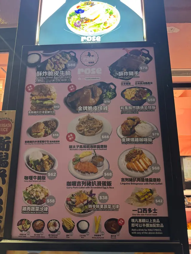 環境真係冇得輸,裝修玩復古薔薇風,打卡一流坐得又舒服,啱晒姊妹聚會吹水服務方面,職員手腳快又有禮貌,落單上菜都爽手薔紅秘製燒雞 -皮燒到金黃脆口,咬落 咔 一聲,油香滿瀉!雞肉嫩滑到離奇,仲要好juicy,完全唔嚡口秘製醃料果然有料到,鹹香中帶啲微甜,入味到骨子裡!就算唔點醬都夠晒味,熱辣辣撕開仲有肉汁滴出嚟邪惡到極香脆豬扒炒滑蛋豬仔包 配肉醬意粉 -一次過滿足兩個願望!個豬仔包烘到微脆入面塊豬扒炸到金黃香口,咬落 咔嚓 聲肉質鬆化唔乾身 炒滑蛋嫩滑到癲,蛋香滿溢肉醬意粉煮得啱啱好,煙韌有咬口肉醬分量足酸甜濃郁,撈勻每條意粉都掛滿醬,仲有微微芝士香一口西多士 -細細件炸到金黃脹卜卜,外皮脆到嗦嗦聲麵包軟熟仲有微微蛋香 煉奶同牛油份量啱啱好甜而不膩,一口一粒食到停唔到口!雖然係油炸但唔會滿口油羅宋湯 -湯底濃郁酸甜啱啱好,飲到番茄同蔬菜嘅鮮甜仲有啖啖嫩滑牛肉同軟腍蔬菜…Read More