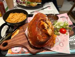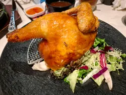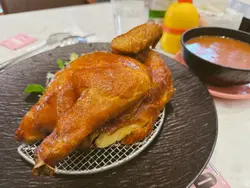金牌脆皮燒雞套餐配薯條白飯和餐飲