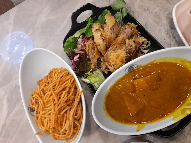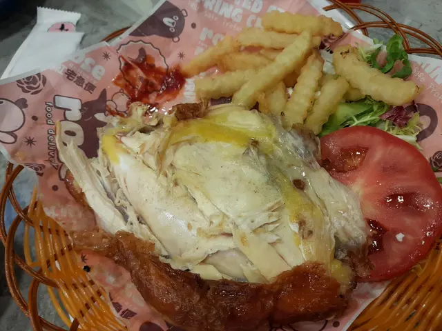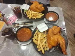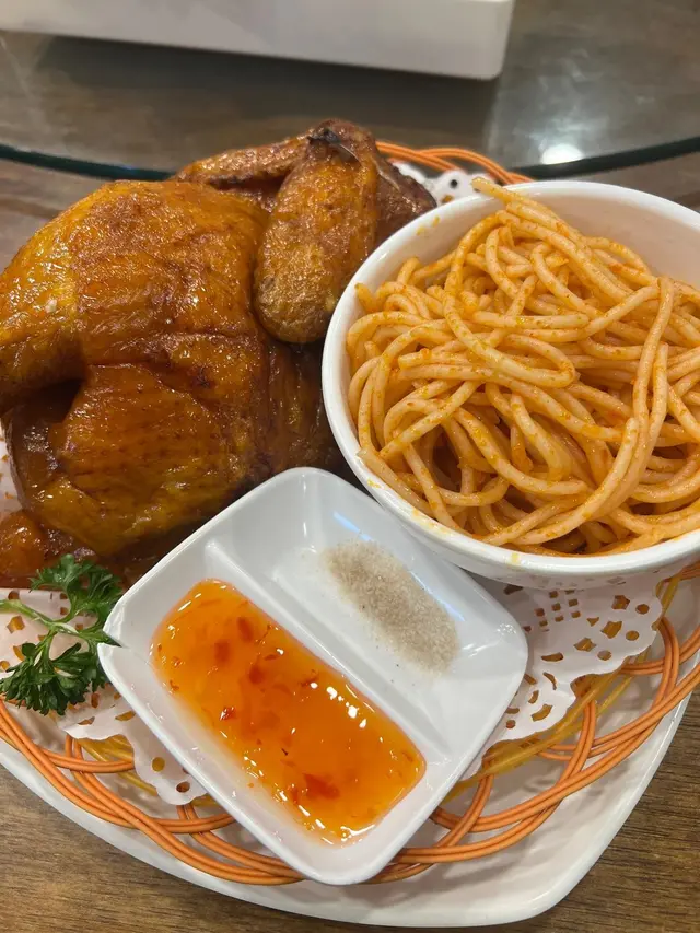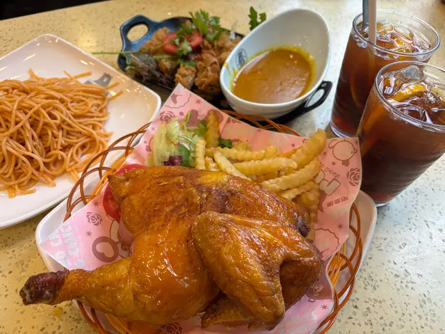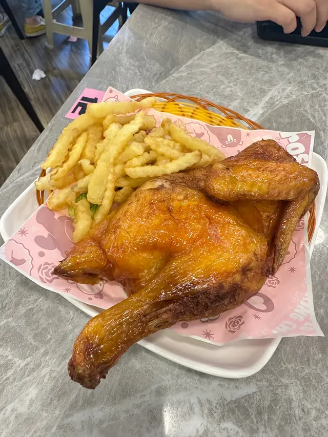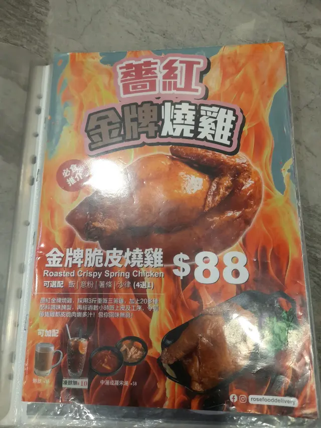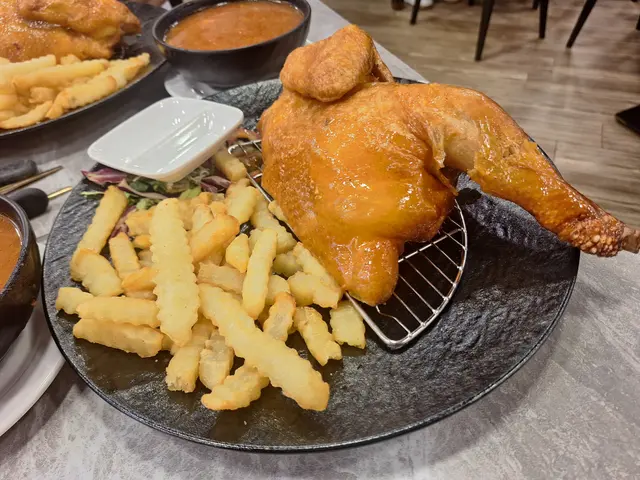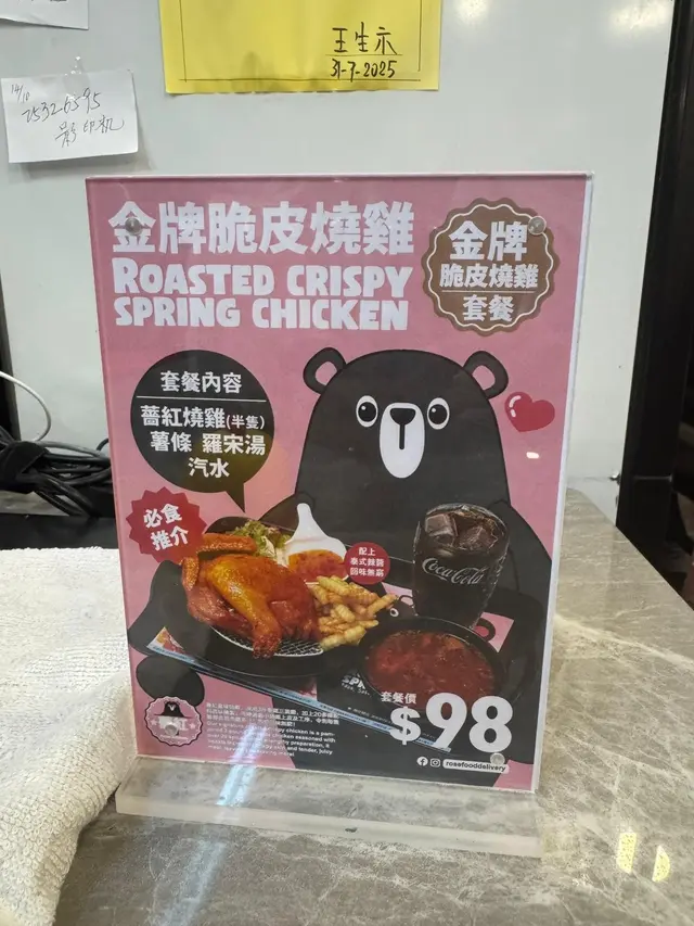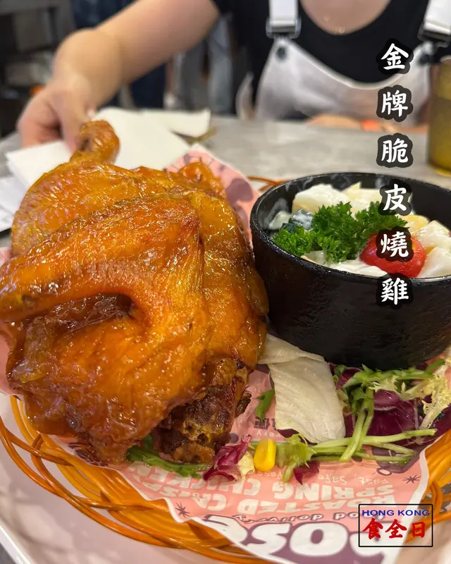 今日(31-5-2025 Sat)端午節,同老公實踐由西環行到北角,但由於晏咗,就取消,改喺灣仔呢喥食咗晏至出發,我哋嚟到時,都算多人,老闆俾我哋坐四人枱,睇完menu,就一定要佢哋嘅招牌$88.00嘅金牌脆皮燒雞配薯條,$8.00嘅羅宋湯,$8.00嘅熱奶茶,$90.00嘅酥炸脆皮牛腩配意粉。落完單,即到嘅就係金牌脆皮燒雞配薯條,然後係兩個飲品,我即飲啖奶茶,澀,要落糖,落咗一茶匙至叫做攪得掂。1分然後食薯條喇,熱騰騰嘅粗薯條正常冇問題,金牌脆皮燒雞熱到老公戴手套都撕唔到,寧願用叉,個皮真係好脆,我食雞上脾,佢嘅雞油好夠,肉質又滑又juicy,枱上有好多調味料俾客人自己落,我就落淮鹽食,之後食雞胸位,嚡啲係正常嘅。5分然後我飲羅宋湯,料都多嘅,味道唔錯。5分酥炸脆皮牛腩配意粉到嚟,睇見意粉另上,同有一兜咖哩汁,意粉用茄汁撈過,唔太酸,口感係香港人口味,唔係中間硬嗰隻,啱我;酥炸脆皮牛腩個皮真係脆,牛腩夠腍,味道亦濃,咖哩汁濃唔太辣,幾好味。5分服務:落完單,即刻俾膠手套,濕紙巾同碗。等客人食完晒嘢至一次過收嘢,唔會太騷擾或有趕客嘅感覺。環境:呢喥設有兩間私人房俾客人。3.5分其他:枱上已放咗好多唔同嘅調味料,重有紙巾同水,好體貼。…查看更多