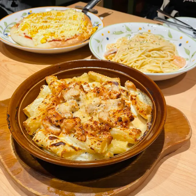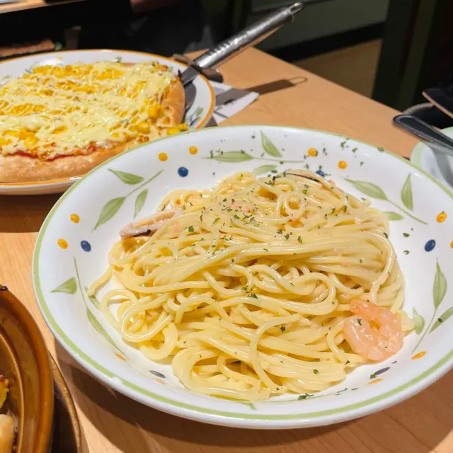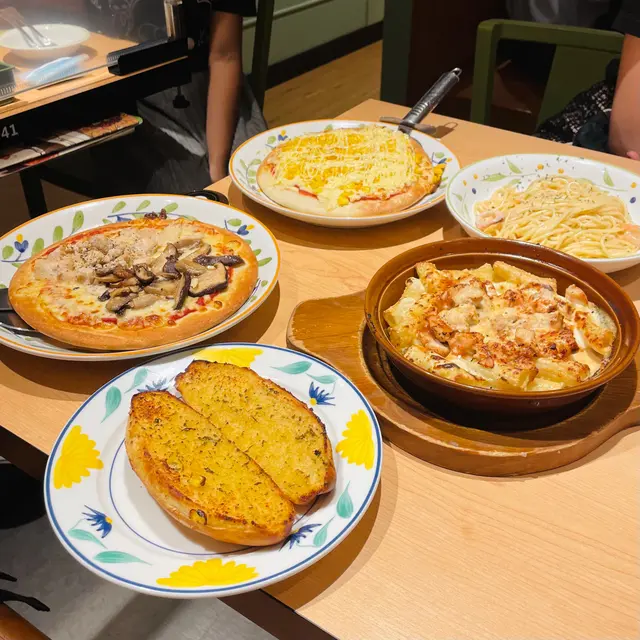 中學時期最中意去就係薩莉亞,因為又平又好味,又可以同時滿足食意粉同披薩既慾望。中學畢咗業到大學就一直無機會食返薩莉亞。時隔4年終於同朋友食返一轉,感覺同以前無咩分別,無論係食物質素,價格,環境,還是衛生等。個服務係十分好,甜品2分鐘出,面8分鐘,披薩15分鐘。個52蚊甜蝦意粉一如既往唔抵,都係要叫30蚊肉醬意粉先好。個三倍水牛芝士披薩就中規中矩,同dough bros差唔多,但係38蚊有良心。個20蚊tiramisu就有d唔抵,一啖就可以食曬,味道算中下,最多值15蚊。個環境都幾好,就係座位有d細。但係我有合理原因懷疑個洗碗工比人壓榨,因為個餐具真係污糟到想嘔