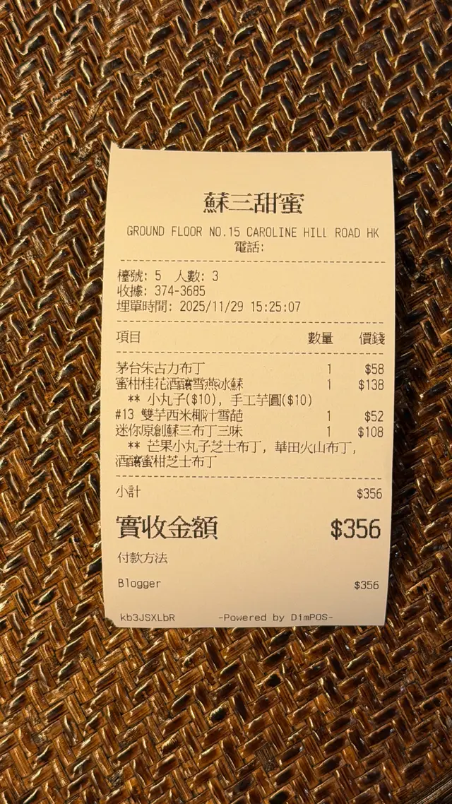 記憶中的糖水鋪大多都沒有什麼精緻裝潢因為大家快快吃完就閃人銅鑼灣的蘇三甜蜜應該是我看過最美的糖水店了蘇三甜蜜以懷舊香港為題深木色的桌椅 海棠花形的窗框 格子地磚每個角落都用心營造年代感跟懷舊風格餐點則主打傳統及中式融合的甜品 有多款招牌甜品 是其他糖水鋪都找不到的𓋪 蜜柑桂花酒釀雪燕冰蘇𓋪 蘇三茅台朱古力布丁𓋪 華田火山布丁𓋪 小四喜𓎾 芒果仙草沙冰來這裡一定要嚐冰蘇跟茅台布丁雪燕冰蘇如瀑布般瀉下 蜜柑果香和桂花清香在中間緩緩散開配上雪燕跟牛奶冰底 口感清新又不太甜膩 隔壁桌把冰蘇直接變成生日蛋糕 好有創意另一個招牌茅台布丁 推薦朱古力口味朱古力味道濃厚香甜 跟茅台滲出的酒香很搭不喝酒的人兒也能體驗看看哦濃郁的華田布丁 香甜口味跟茅台布丁各有千秋想要清新口感的 可點小四喜仙草拼盤有煙軔芋圓 酸甜芒果粒配清涼仙草 口感豐富多少消除前面的重口味哈哈最後點了爽口解膩的芒果仙草沙冰超大杯 絕對可以跟友人分享…查看更多