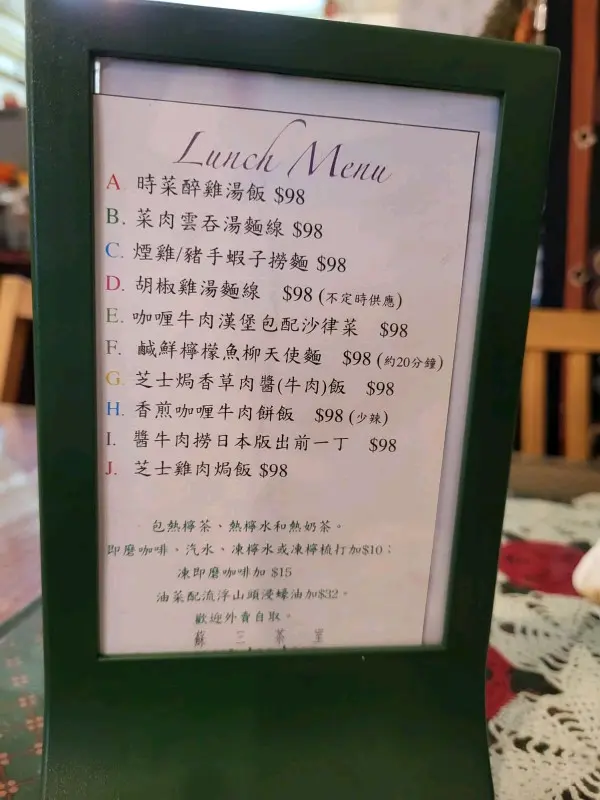 蘇三茶室 (土瓜灣) 網址: https://s.openrice.com/QrbS0e3e000 地址: 香港土瓜灣美善同道1號美嘉大廈地下10號舖 電話: +852 27143299