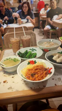 炸醬麵: 幼麵確實彈牙,拌上酸辣炸醬,開胃惹味。肉末與醬汁緊裹每根麵條,酸中帶辣,辣中透香,口感層次豐富,瞬間喚醒味蕾。淨菜肉雲吞: 雲吞大大粒,皮薄餡足。豬肉與蔬菜比例恰到好處,蒸製保留原汁原味,鮮美不膩,蘸點醋汁更顯風味。菜心加腩汁: 菜心翠綠爽脆,淋上濃郁腩汁,簡單卻驚喜。凍檸檬水與凍檸檬茶: 兩杯飲品冰涼解渴。檸檬水清新酸爽,消暑解膩。整體而言,這套餐點從主菜到配菜皆用心十足,滿足感十足,是頓令人回味的美味體驗。