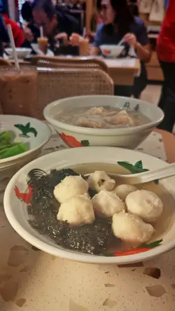 【🤤粉嶺呢間蘇哥,真係食到舔舔脷!】 今日行到粉嶺名都商場,見到呢間「蘇哥清湯腩」,決定入去試下! 😋首先叫咗個「京都炸醬幼麵」,下午茶時間抵好多!炸醬味道濃鬱,幼麵勁彈牙,仲有杯凍朱古力,甜度啱啱好,解渴又好味,呢個組合39+3蚊,抵到爛!跟住個「淨墨魚丸」加紫菜,墨魚丸彈牙到好似乒乓球,紫菜鮮甜,51蚊有交易,正到痹! 仲有個「鮮蝦雲吞河粉」,雲吞入面嘅蝦大隻又新鮮,河粉幾滑,39蚊絕對係良心價!配菜叫咗碟「油菜菜心」,菜心夠嫩,15蚊抵食!仲有杯凍奶茶,茶味濃郁,奶滑,下午茶跟餐雲吞河只係3蚊杯,抵到冇朋友! 兩個人食到捧住個肚走,埋單先150蚊,人均75蚊就食到咁豐富,仲要係堂食環境乾淨企理。呢間鋪真係隱世寶藏,住附近或者去粉嶺行街嘅朋友,千祈唔好錯過!下次一定再嚟試其他款!黑色衫紮邊嗰個靚姐態度超好!!好少見魚蛋粉啲夥記啲態度會咁優質!!