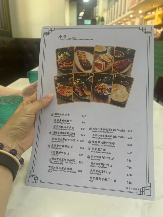 4-10-2025(Sat)晏晝同老公離開將軍澳後,我記起始創中心有間舖賣小忌廉嘢,於是走去,但原來老公又有嘢去砵蘭街某商業大廈攞,咁先去攞嘢,而其實我係肚餓唔飽,於是攞完後,就嚟呢喥食少少嘢。我哋嚟到唔多人,坐低後睇menu,有$66.00嘅榴槤多士餅配雪糕,印象中好似同老公喺荃灣食過,翻查記錄,果然係,就係2025年2月2日提交,上次荃灣嘅呢篇食評 https://s.openrice.com/QrbT0CkbP00~ukrQAAA。咁今次我哋唔食喇,食$42.00嘅椰香咖央多士?好似普通咗啲,但睇到$48.00嘅海南鴛鴦燒麵包好似好吸引,不過鴛鴦係咩嚟?落單時問啲店員先。而嘢飲方面,我要$42.00嘅椰汁班蘭冰,老公要$42.00嘅薄荷桔仔梳打。決定咗後,就叫店員問問題,佢答咗唔知咩嘢,但好有禮貌,之後我哋用QR code落單。落完單,兩杯嘢飲到嚟,我揀椰汁班蘭冰少冰嘅,飲落,班蘭味出啲,亦有稍為腍咗啲嘅西米,而成個味道都唔太濃,亦唔太杰。4分老公嘅薄荷桔仔梳打呢?我哋都覺得酸咗啲,要加返多少少糖漿。2.5分最後海南鴛鴦燒麵包到嚟,見到麵包係朱古力色,亦見到有咖央同牛油,食落,麵包好夠脆亦有味,但唔知係咩味,唔飲似朱古力但好味嘅,而咖央醬就甜咗啲,加牛油嘅滑,成個係唔差。4.5分服務:唔錯,好有禮貌。抵食係2.5分…查看更多
