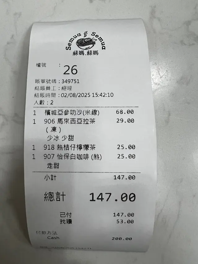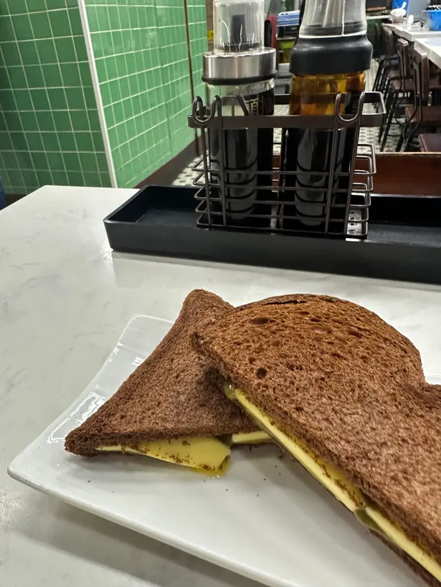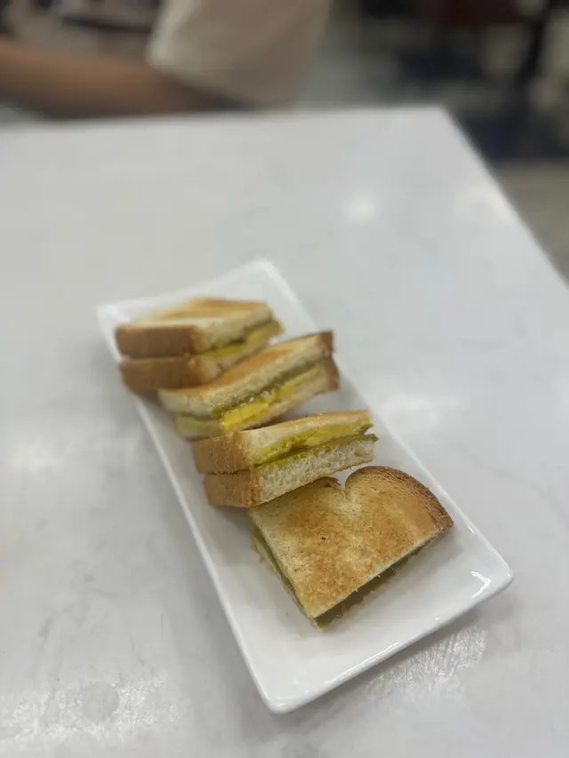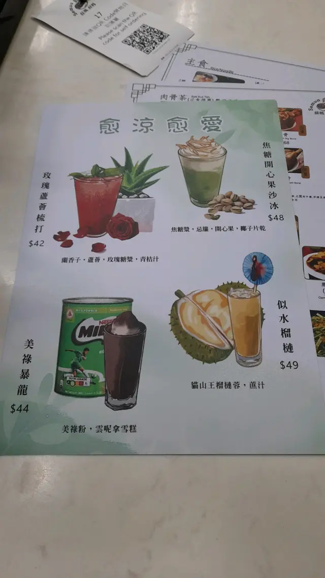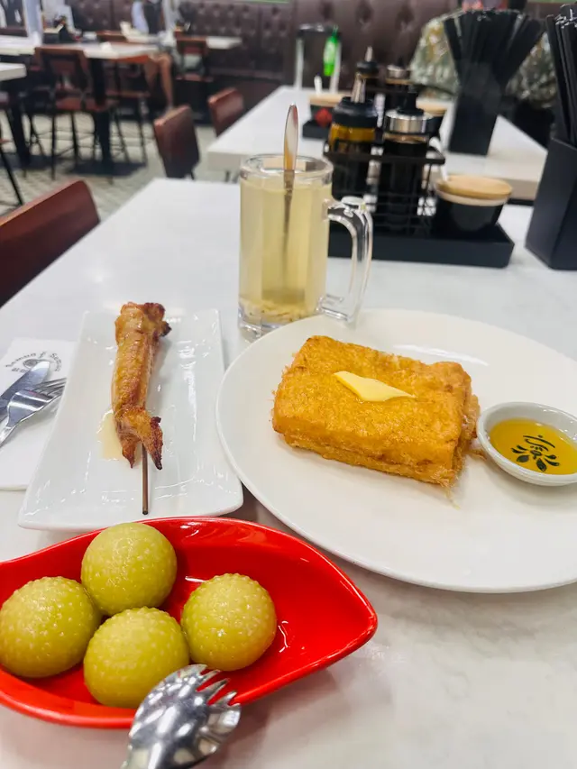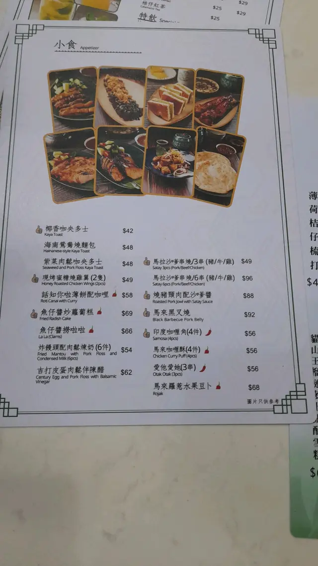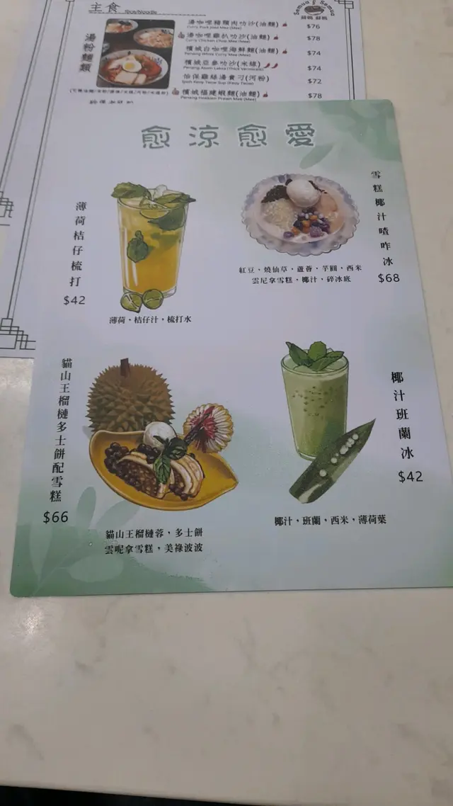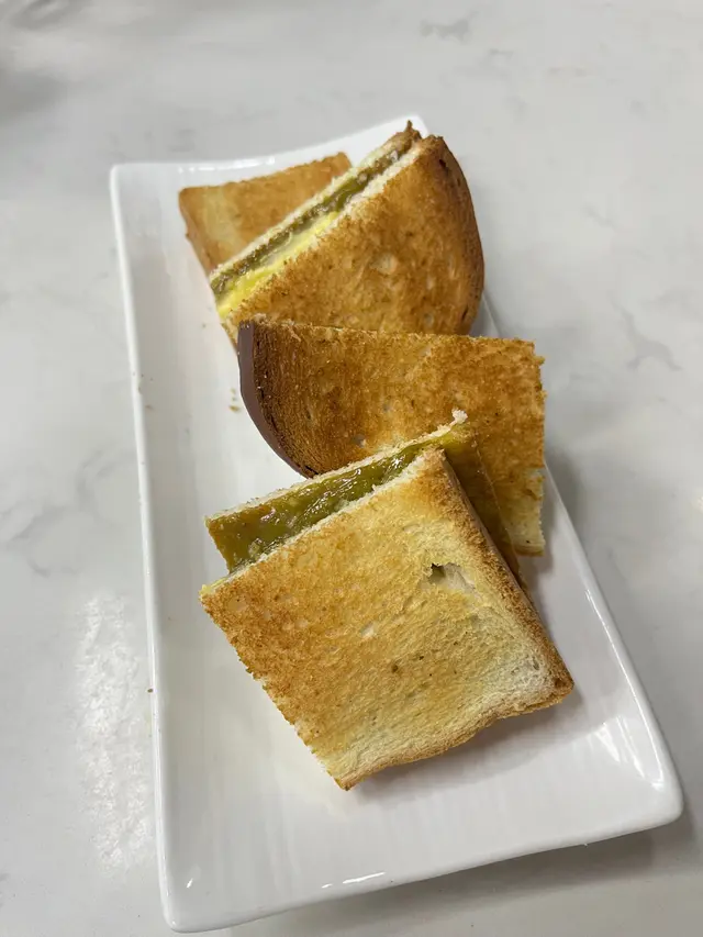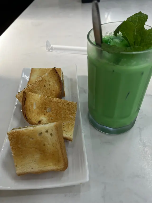 4-10-2025(Sat)晏晝同老公離開將軍澳後,我記起始創中心有間舖賣小忌廉嘢,於是走去,但原來老公又有嘢去砵蘭街某商業大廈攞,咁先去攞嘢,而其實我係肚餓唔飽,於是攞完後,就嚟呢喥食少少嘢。我哋嚟到唔多人,坐低後睇menu,有$66.00嘅榴槤多士餅配雪糕,印象中好似同老公喺荃灣食過,翻查記錄,果然係,就係2025年2月2日提交,上次荃灣嘅呢篇食評 https://s.openrice.com/QrbT0CkbP00~ukrQAAA。咁今次我哋唔食喇,食$42.00嘅椰香咖央多士?好似普通咗啲,但睇到$48.00嘅海南鴛鴦燒麵包好似好吸引,不過鴛鴦係咩嚟?落單時問啲店員先。而嘢飲方面,我要$42.00嘅椰汁班蘭冰,老公要$42.00嘅薄荷桔仔梳打。決定咗後,就叫店員問問題,佢答咗唔知咩嘢,但好有禮貌,之後我哋用QR code落單。落完單,兩杯嘢飲到嚟,我揀椰汁班蘭冰少冰嘅,飲落,班蘭味出啲,亦有稍為腍咗啲嘅西米,而成個味道都唔太濃,亦唔太杰。4分老公嘅薄荷桔仔梳打呢?我哋都覺得酸咗啲,要加返多少少糖漿。2.5分最後海南鴛鴦燒麵包到嚟,見到麵包係朱古力色,亦見到有咖央同牛油,食落,麵包好夠脆亦有味,但唔知係咩味,唔飲似朱古力但好味嘅,而咖央醬就甜咗啲,加牛油嘅滑,成個係唔差。4.5分服務:唔錯,好有禮貌。抵食係2.5分…查看更多