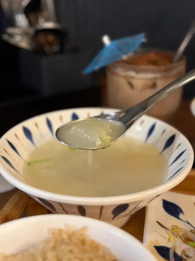 二訪位於太子嘅蘇山雞飯今次特登下午茶時間嚟encore海南雞飯🐓天氣太熱放棄咗椰子雞煲 冬天一定要再凱旋歸來先得😎🔸 招牌海南雞飯 上枱嘅時候已經覺得海南雞賣相出色雞肉無骨嫩滑 皮肉之間夾咗層啫喱配埋油飯 及 三款醬汁:辣汁、薑蓉同甜豉油令雞肉味道層次更高冬瓜湯加入雞雜更加鮮味 冇半點腥味入口充滿雞同冬瓜嘅自然鮮味🔸 扎肉手撕雞湯粿條 粿條偏粗身 質地軟滑 夾嘅時候好易滑走!一絲絲嘅手撕雞同扎肉 口感層次豐富湯底清甜有雞香 滿足! 🔹 麻辣玻璃魷魚通菜 通菜面頭鋪上爽脆玻璃魷魚再拌上濃郁嘅麻辣汁 辣度適中 反而香氣突出🔸 夜市沙嗲(牛肉/雞肉)分別有2枝牛肉/雞肉串 兩款肉經醃製後燒至外層微微焦香沙嗲醬香濃惹味 有粒粒嘅花生 甜甜辣辣🔹 雪糕薄荷朱古力咖啡用一球薄荷雪糕作點綴濃郁嘅咖啡雪糕半溶落咖啡令咖啡苦中帶點甜 幾特別🔸 凍金裝柑桔蜜用上新鮮青柑桔 味道天然 清新解膩!🚩蘇山雞飯 太子彌敦道759-761號藍馬之城地下2-3號舖…查看更多