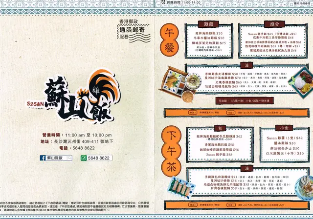 蘇山雞飯 (長沙灣) 網址: https://s.openrice.com/QrbS0wA8A00 地址: 香港長沙灣元州街411號義華大廈地舖 電話: +852 56488622