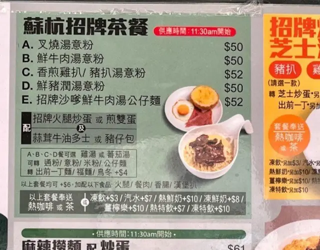 上環深受上班族歡迎冰室💼 bobochow_等級42024-02-171K 瀏覽 關注 呢間上環冰室深受附近上班族歡迎💼價錢平 大大份 不過環境就逼夾左少少🤏🏻.➿蘇杭招牌茶餐➿個人超愛常餐 港式茶記必有🤘🏻.📌叉燒湯意粉 $50叉燒份量唔少 感覺多過澳牛🤫肉質偏瘦 但唔柴口 可以接受 冇豬騷味 淡淡叉燒香甜🐷意粉唔會太淋 爽彈有咬口 揀左雞湯底 配湯意好夾🍝.📌鮮豬膶湯意粉 $50豬膶都有幾多片 有厚度 爽脆唔粉 有咬口🐽不過腥味都重🩸食豬膶必配蕃茄湯 有茄肉 幾足料 但味道偏甜 唔夠開胃🍅.📌香煎豬扒湯意粉 $52豬扒雖然薄 但好大塊 鋪滿成個碗 肉質唔柴 冇豬騷味🥩轉福麵(+$4) 唔會太淋 正常發揮 就係好重味精味🍜.📌配招牌火腿炒蛋或煎雙蛋炒蛋夠滑唔老 蛋味幾濃 淡淡奶香 煎蛋外層焦脆 蛋味相對突出🍳火腿正常發揮 加蛋一齊夾包食 真係無敵🥓.📌配蒜茸牛油多士或豬仔包多士烘到脆卜卜 蒜香牛油味濃郁 香口唔油膩🧄🧈豬仔包搽滿牛油烘 金黃脆口 唔乾身🥖.📌熱齋啡📌凍齋啡+$3跟餐送熱咖啡或茶 凍飲加$3🥤咖啡偏重酸味☕️…查看更多+ 4以上食評乃用戶個人意見 , 並不代表OpenRice之觀點。讚好分享上環深受上班族歡迎冰室💼 蘇杭冰室 https://s.openrice.com/QrbT0eUnG00檢舉 張貼 評分5味道4環境5服務4衛生5抵食推介美食叉燒湯意粉$50鮮豬膶蕃茄湯意粉$50香煎豬扒湯福麵$52蒜茸牛油多士或豬仔包配招牌火腿炒蛋蒜茸牛油多士配招牌火腿炒蛋豬仔包配招牌火腿炒蛋豬仔包配煎雙蛋用餐途徑堂食