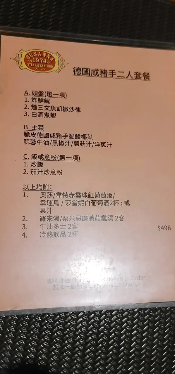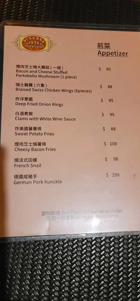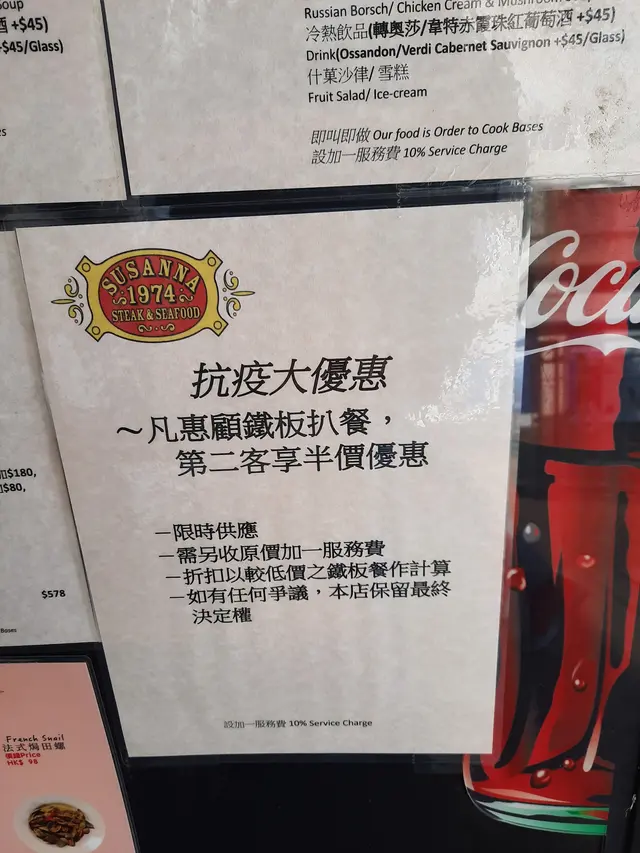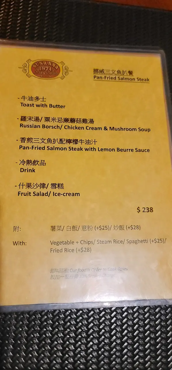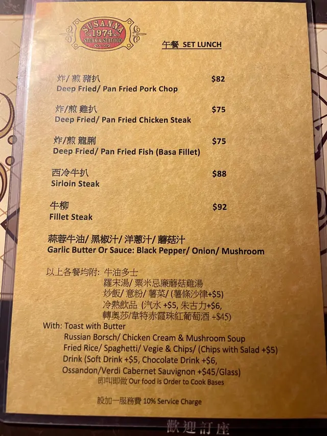 蘇珊娜餐廳 (西貢) 網址: https://s.openrice.com/QrbS0JGq000 地址: 香港西貢普通道76號地舖 電話: +852 27927163