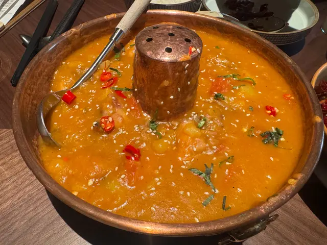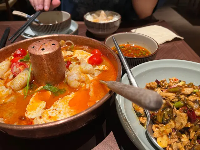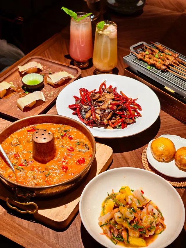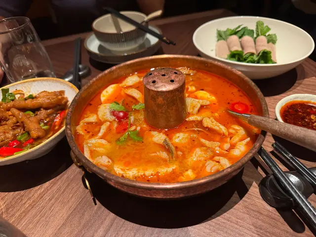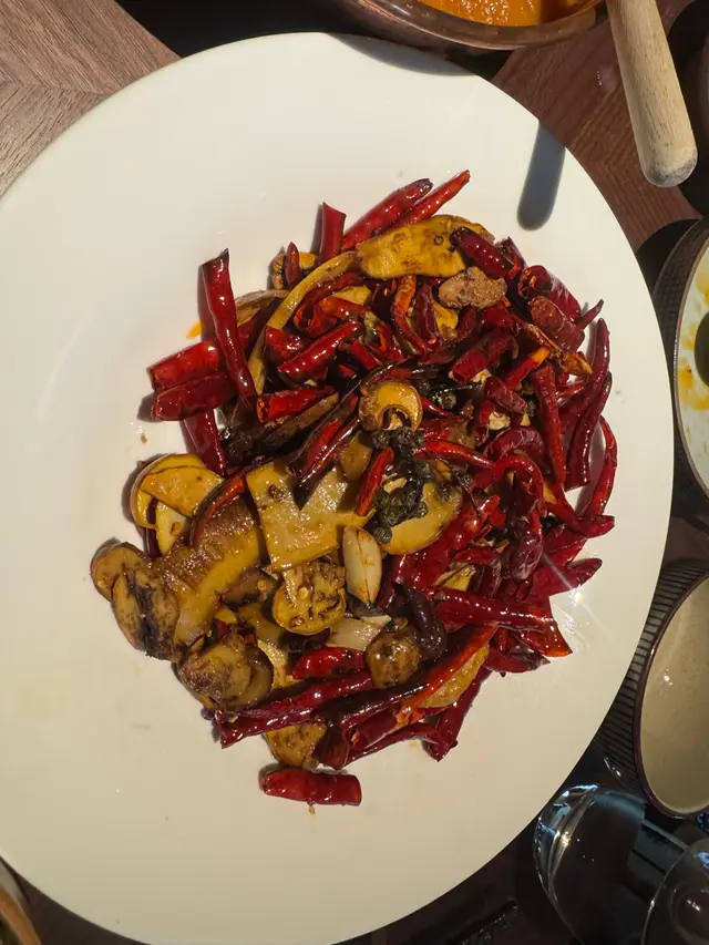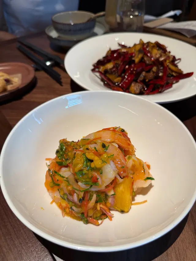 呢間餐廳以雲南滇菜為主打,融入來自佤族、傣族等少數民族嘅傳統風味,更有一系列珍稀菇菌菜式🥢大廚團隊嚟自雲南,廚藝總監由曾獲黑珍珠一鑽嘅大廚擔任🏵️💗百香果油醋汁鳳梨鳳尾蝦($108)大隻爽口嘅鳳尾蝦配上酸酸甜甜嘅新鮮鳳梨🦐以清爽嘅百香果油醋汁同大量芫荽調味,非常開胃🍍💗三年諾鄧火腿配手撕乳扇($328)雲南諾鄧火腿有「中國三大名腿」之稱🍖大理白族獨創嘅手撕乳扇係以鮮牛奶混合酸漿拉製後晾乾成薄片🧀火腿嘅鹹香醇厚,奶香濃郁嘅乳扇,再加上香甜多汁嘅哈密瓜,味道好有層次🍈💗螺絲椒炒白葱($328)嚴選時令雲南野生白牛肝菌,菌肉緊實爽脆🍄🟫加入螺絲椒猛火快炒,濃厚嘅菌香碰撞微辛嘅青椒香味🫑💗油淋雲南黃牛乾巴($268)黃牛乾巴將黃牛肉以鹽、花椒、辣椒等香料醃製,再晾曬風乾而成🥓並加入大量文山丘北縣特級乾椒同花生爆炒,味道麻辣鹹香,越食越上癮🌶️💗大理野果酸湯魚($268)貴州酸湯魚湯頭酸辣醒胃,檸檬香茅味突出,味道有d冬蔭功🍲鮮魚片嫩滑無骨,仲有豆腐、芽菜同萵筍等配料吸收湯汁精華🐟💗諾鄧火腿燜小麥瓜($88)選用雲南特有姜柄瓜,瓜肉入口軟爛🥒加上清嘅嘅紅蘿蔔,加入炸蒜頭同鹹香諾鄧火腿炒香🥕💗古法銅鍋油燜雞($198)油燜雞將雞肉、薯仔、番茄等配料放入銅鍋燉煮🥘雞肉保持油潤嫩滑,薯仔炆到軟爛入味,味道濃稠且帶微辣,送飯一流🥔💗炭烤牛肉小串($138)炭烤牛肉串肥瘦均匀,充滿孜然粉香味,麻辣風味非常惹味🍢💗老昆明韭菜花肉末小鍋米線($78)小鍋米線湯頭酸辣鮮爽,配上滑捊捊嘅米線,有少量豬肉碎同韭菜作配料🍜💗黑松露菌子燜飯($98)選用野生黑松露、牛肝菌、黑皮雞樅菌等時令菌菇,將濃郁菌香燜入米飯中🍄🟫再配搭煎荷包蛋同酸醃蘿蔔🍳將所有材料撈飯一齊食,味道好豐富🍚💗鮮花餅($12/個)以鬆化嘅油酥餅皮包裹住玫瑰花餡,食起嚟花香濃郁且甜而不膩🌹💗荔枝冰茉莉($38)茉莉花茶加入新鮮荔枝調製,充滿清新嘅果香同幽雅嘅花香🌸💗檸檬油柑茶($38)檸檬油柑茶酸甜解渴,可以有效促進消化🍋…查看更多