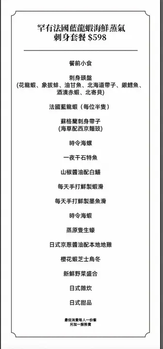 罕有法國藍龍蝦海鮮蒸氣刺身套餐👍🏻