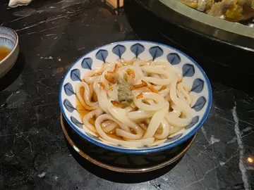 個櫻花蝦芝士鮑魚烏冬,個名聽落已經好吸引啦!個烏冬麵上面鋪滿咗大大隻嘅鮑魚,仲有啲金黃色嘅櫻花蝦,再加埋一層厚厚的芝士,真係睇見都流口水!成個碗烏冬麵好似一幅畫咁靚!除咗個烏冬麵,仲叫咗個野菜盛合,啲菜全部都好似剛從田地摘返嚟咁新鮮,顏色翠綠翠綠,睇落去就已經好有食欲。最後仲有甜品,雖然唔記得叫咩名,但係食落口甜甜地,冰冰涼涼,真係好解膩。