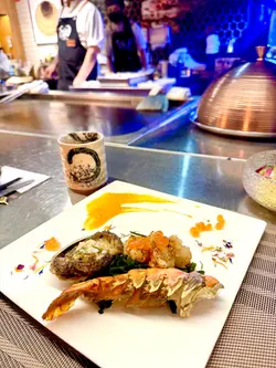 【日式和牛海鮮套餐】$1,199 p.p.時令沙律(有露荀 蕃茄 生菜青瓜 蘿蔔)黑松露茶碗蒸(鮮甜嫩滑 大碗足料)虎蝦(外層香脆 肉質爽彈 蘸點蝦膏更惹味)銀鱈魚(外煎封內嫩滑魚油十足)南非鮑魚(新鮮彈牙)>美國龍蝦(肉質爽彈)魚籽醬鵝肝多士 配龍珠果A5和牛薄燒(A5 Wagyu 牛脂香又嫩滑)(竹碳鹽 蒜片 自家製炸蒜蔥花 南瓜醬)+$199可升級A5和牛厚燒香煎野菜(南瓜 蕃薯 甜椒)龍蝦昆布豆腐麵豉湯(鮮甜)蟹肉炒飯(香蔥 蛋花)梳乎里雪糕最後甜品既 Souffle質地綿密 伴隨香甜雪糕,是一頓完美晚餐的作結!趁優惠期間~來試試吧 !每兩位消費滿$1,500送龍蝦1隻,四位送2隻,虎鐵鐵板燒 -Tora Tetsu Teppan Yaki📍銅鑼灣軒尼詩道525號澳門逸園中心12樓…查看更多