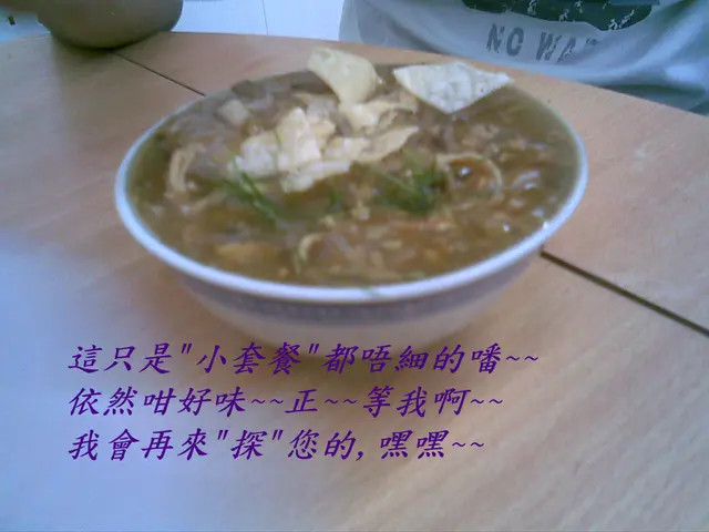 但完全唔合格..又凍又濕,料又唔多..這是一碗 <無料糯米飯 >最欣賞反而係..薄脆入口脆,浸落去都唔會覺得好淋..