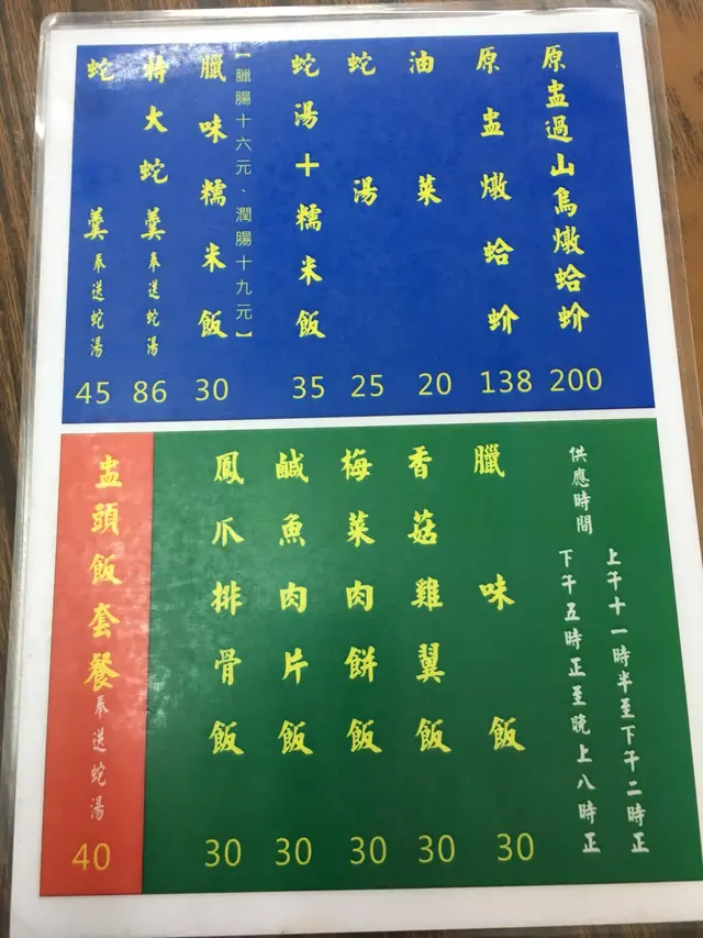 十幾年前有個週圍搵好嘢食既朋友帶我嚟蛇王龐食,試過之後幾乎食親蛇就會嚟哩度。而家個朋友都移咗民,而我亦一直嚟食,間唔時仲介紹朋友嚟。點解我會keep住嚟呢?其實蛇羮既味間間都差唔多,無話邊間特別好食,反而我會睇用料足唔足。蛇王龐既蛇羮係我食過咁多間蛇王入面最多既。有時肉眼望唔同蛇王既蛇羮用料好似都差唔多,但其實當中用既肉唔係全部蛇肉,唔多唔少都會加啲雞肉或豬肉,只不過比例就各有不同。以下係蛇王龐既菜單:套餐A $87有細蛇羮、臘味糯米飯同蛇湯我覺得幾抵,糯米飯算整得唔錯,加花生同蔥花,冬天食一流。哩個餐一般食量既人都應該夠飽。但我今次夜啲仲有其他地方去,唔食太飽只食個大蛇羮:蛇羮加紅醋、楜椒粉同最重要既檸檬葉,舖頭既有薄脆提供。見到個碗其乎見到既肉都係蛇肉嚟,蛇肉個質感比雞肉同豬肉韌同硬,咬爛有一絲一絲既感覺,好易分。食完蛇羮係會有蛇湯送,老闆會攞走你食完蛇羮既碗裝碗蛇湯,湯係幾清甜,但我就覺得藥材味可以再重啲。食完蛇羮蛇湯,成個胃暖哂。舖頭仲有各類蛇酒提供,有興趣唔需要成枝買,可以試一細杯。我試咗個五鞭蛤蚧壯陽酒,飲完好似森美講故所講成個男人返哂嚟!