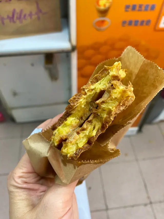 太安樓掃街已經好少食格仔餅,因為坊間D格仔餅得個厚字,餅身又軟,冇蛋味,同埋D練奶花生醬溝到好稀,當食嘅時候D汁垂直流晒係袋底,已經放棄格仔餅好耐咁啱見到蛋記有幾個人排隊,又試吓佢嘅格仔餅($22)等咗大概15分鐘有得食,心諗睇點解格仔餅🧇咁薄,係咪咁慳料,食第一啖完全明白咁薄有原因,外脆內軟,有D蛋味,仲有D牛油花生醬練奶唔會好稀,每啖格仔餅都有醬料,好好食食完即時追加雞蛋仔,想試吓特別D,叫咗芝士雞蛋仔($28),又係15分鐘左右有得食,雞蛋仔都係外脆內軟,係好食嘅,但係食唔到芝士味!總括嚟講係好食嘅😊