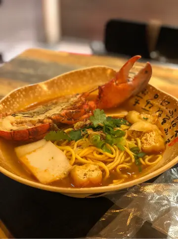 餐廳位置離九龍城廣場好近,餐廳環境可以。二人座位在水吧對面,員工走來走去,稍為迫一點,坐得不太舒服,如果四人座就舒適多了。員工服務態度很好,會介紹菜單,有禮貌,招待不錯。食物方面強差人意,招牌蝦湯底很淡(但加了辣醬後惹味不少),半隻龍蝦細得可憐,一啖食完,味道也不出色!麵份量也足夠,但是$100一碗似車仔麵的淨龍蝦麵來說不值。衹此一次,可以不試,九龍城有太多其他更好的選擇。總括來說,如果以$100吃一碗車仔麵,不值。