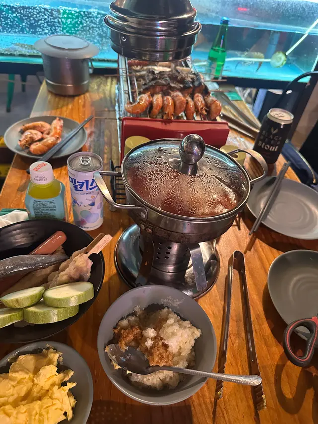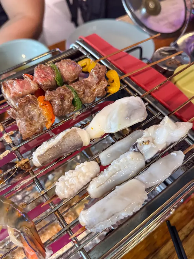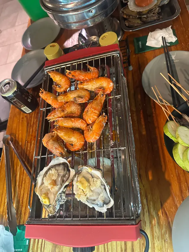 最近去佐敦嘅蝦蝦燒,除咗佢哋招牌嘅各款海鮮燒烤,最難忘嘅係親身體驗現撈流水蝦。餐廳有幾個大水缸,蝦係活生生喺度跳動,見到佢哋咁鮮活,好有誘因夾嚟嚐鮮。我哋先將啲蝦放一陣冰水凍暈,跟住就用電子爐燒至蝦殼帶微微焦香。蝦肉好彈牙Juicy,啖啖都係蝦膏鮮甜,個人覺得加埋佢哋特製泰式酸辣汁,味道層次更加豐富,酸辣帶出蝦鮮甜,十分惹味。呢個流水蝦嘅體驗真係同平時食嘅急凍蝦質感唔同,感覺更加鮮活同有趣。除此之外,蝦蝦燒都提供多款其他海鮮,同時有帶子、三文魚,鮑魚,生蠔,新鮮得嚟彈牙爽口;燒生蠔鋪咗蒜蓉,香氣撲鼻,啖啖肉嫩滑多汁。鮑魚原隻燒得恰好,保持嫩滑夾帶嚼勁,入口鮮甜又有海味,三文魚好肥美,燒得表面香脆,內裡仲好嫩滑。串燒有好多選擇,包括牛柳串,燒得微焦啱啱好,肉質嫩滑帶少少煙韌感,入口香甜多汁。另外,仲試咗雞軟骨串,烤得香脆爽口,帶啲骨頭嘅口感,好有層次。燒金菇牛肉卷,牛肉嫩滑,金菇爽脆,係串燒入面幾有特色嘅一款。至於燒湘菜辣味雞翼,微辣夠味,香氣四溢,食落令人回味。飲品方面提供多款啤酒及汽水任飲,夠清涼解渴,特別啱中和燒烤嘅油膩,仲有無限雪糕提供,真係超抵食。…查看更多