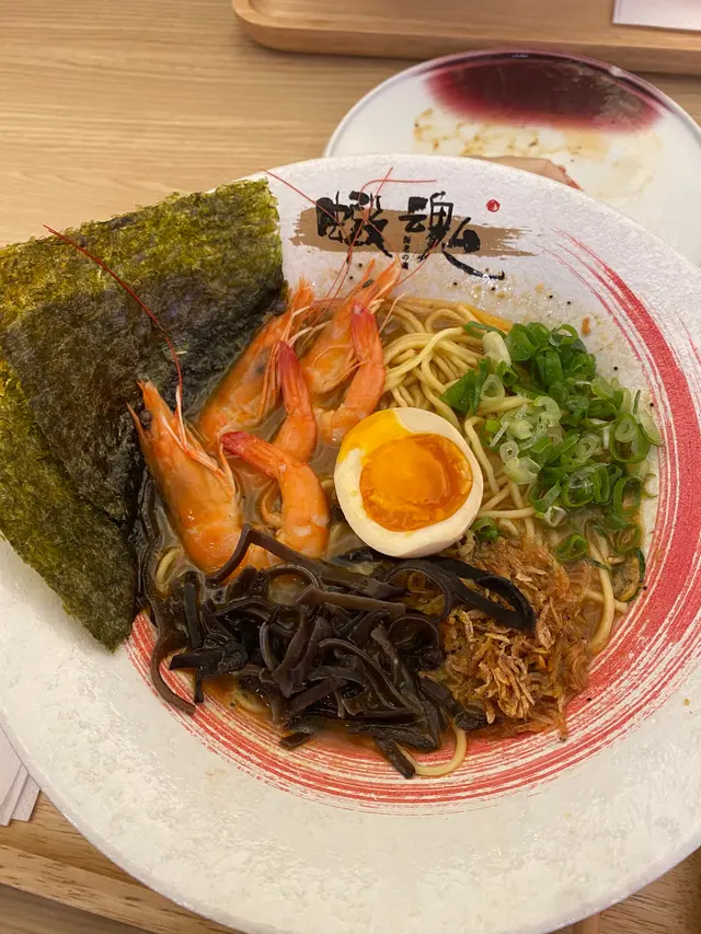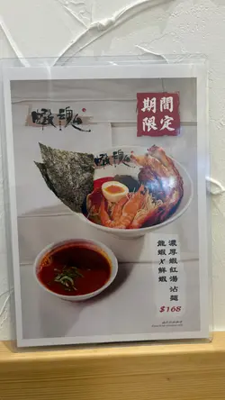 蝦•魂日本拉麵由湯、麵、主菜、配料組成,發展出千變萬化嘅組合。但我相信好多人都認同拉麵嘅靈魂在於湯底,所以舖頭開宗明義,用(蝦)去煉成麵嘅靈(魂)拉麵湯底五花八門,豚骨湯、雞白湯、麵豉湯、海鮮湯、蝦湯都有不同,由於蝦湯魚湯煮太耐會流失鮮味,所以比較少店家採用。主餐牌提供4款拉麵及5款飯類,個人認為選擇太多。一來會增加人手壓力,又會減慢食材流量,做成食物水準下降及浪費。三來令客人點餐時間增加,等等都係不利店家營運。今日點咗碗鮮蝦·蝦紅湯麵加慢煮豚肉叉燒,另外試咗花雕酒漬鮑魚同埋和牛餃子。鮮蝦·蝦紅湯麵$88蝦湯麵呈紅褐色,鮮先一口非常鮮甜,但未算好濃郁。哈非常新鮮,蝦膏滿瀉,而且廚師好細心,只剩下頭尾嘅殼,輕輕一幕已經好方便食用。其他配料正正常常,麵質爽彈,而且好掛湯。食完一碗都意猶未盡。