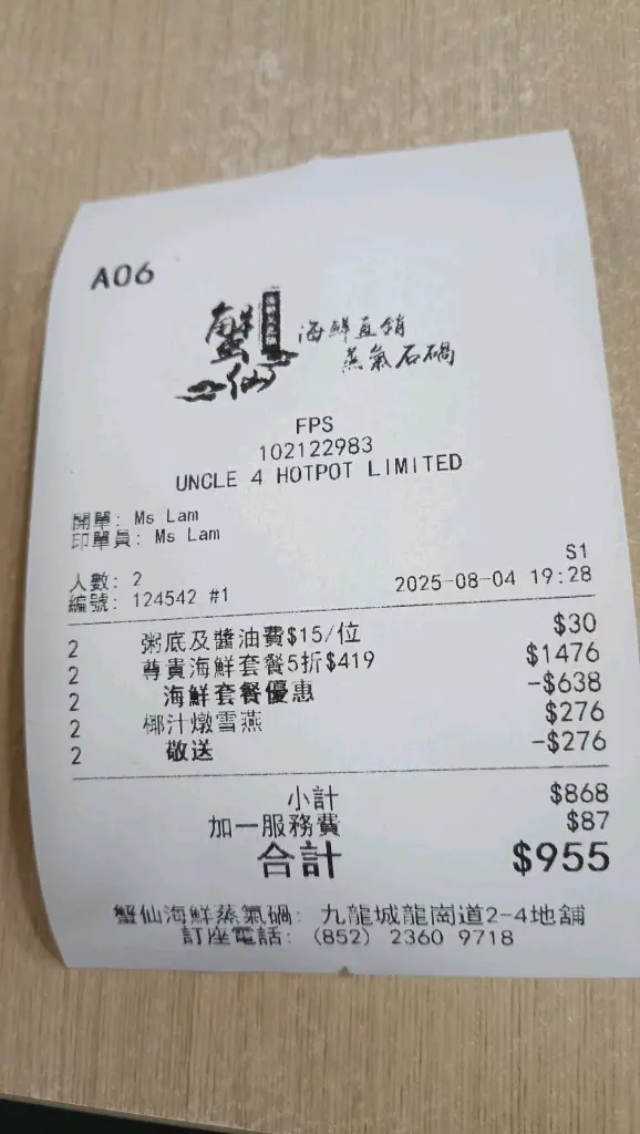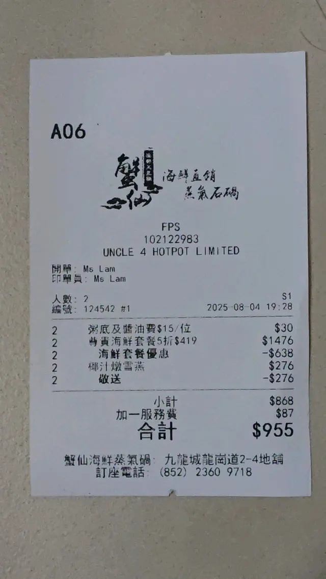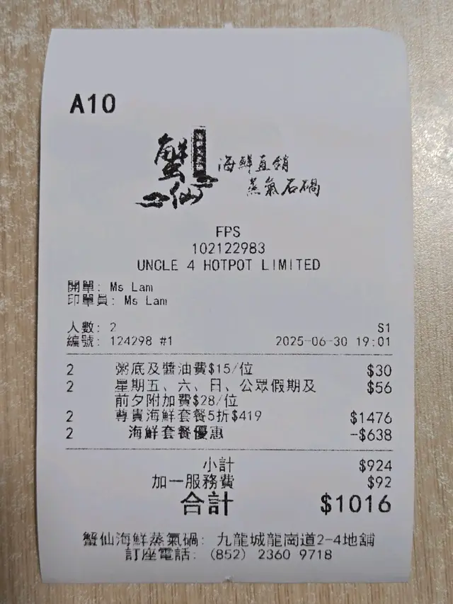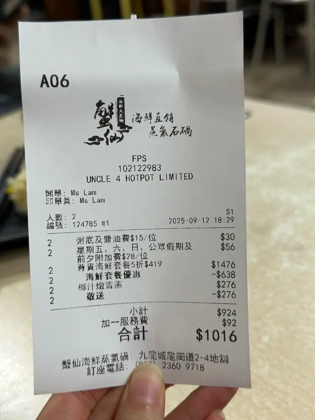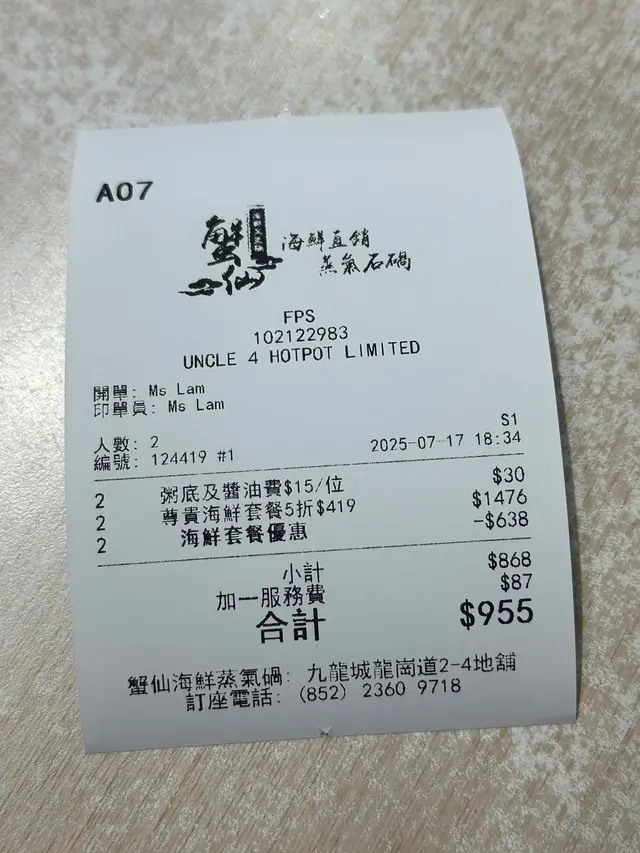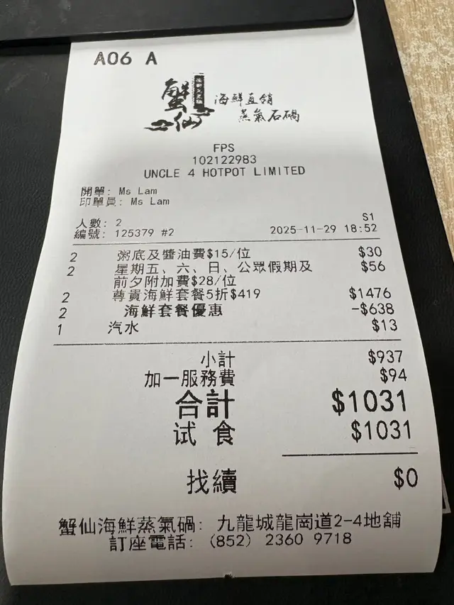 蟹仙海鮮蒸氣鍋 (龍崗道)條款及細則:
