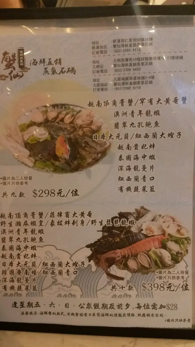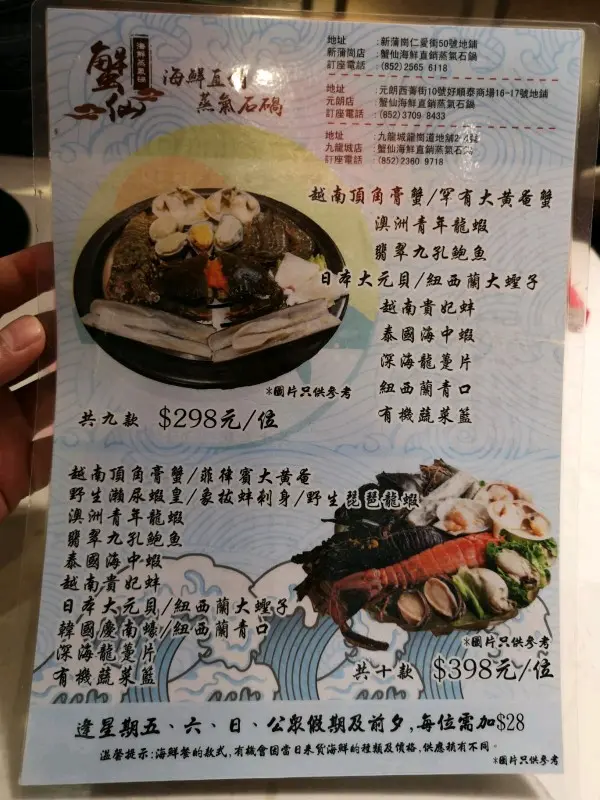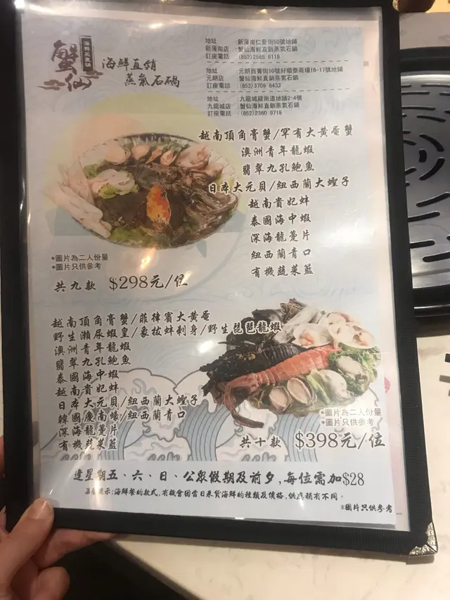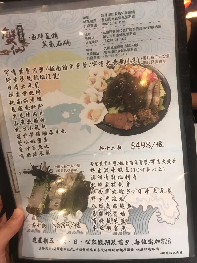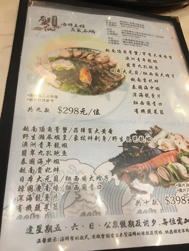 今日突然想食蒸海鮮,所以就黎元朗試試蟹仙先!坐底無耐餐廳職員就送黎粥底既材料,有栗米、南瓜、排骨、珍珠米,睇黎個粥底會好甜我地就叫左個$398既套餐,深海龍躉片、翡翠九孔鮑魚、日本大元貝、泰國海中蝦、韓國慶南蠔呢個就係越南頂角膏蟹和澳洲青年龍蝦餐廳職員好好咁將海鮮放入蒸爐入面,佢地仲會幫手計時,確保海鮮既烹調時間無誤呢隻野生既琵琶龍蝦更加係我前所未見,肉質係非常鮮嫩彈牙,又多膏鮑魚就蒸到非常淋甜最後蒸哂所有野之後,個粥就有哂所有食材既精華啦…查看更多
