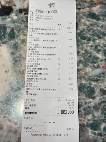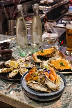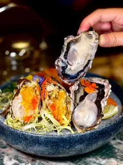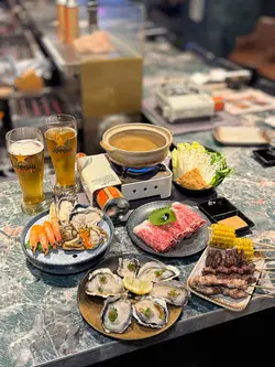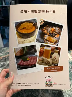 今次嚟到位於尖沙咀嘅蠔埕,餐廳行日本居酒屋風格,好適合同朋友晚上去小酌幾杯。餐廳使用開放式廚房,坐喺旁邊可以欣賞師傅製作炭燒串燒嘅過程,並且聞到陣陣炭燒香氣。餐廳以高質日本食材為主打,包括日本和牛、牡蠣、阿波美雞肉同埋海鮮。最近踏入大閘蟹時令季節,餐廳以大閘蟹為主題,推出炭燒大閘蟹蟹粉雞湯金勾翅全宴,非常豐富。煙燻花雕熟醉大閘蟹海蝦海鮮拼盤一上枱煙霧瀰漫,儀式感十足。花雕熟醉大閘蟹同埋海蝦酒香濃郁,大閘蟹蟹膏濃郁甘香,生蠔帶有海水鮮味,每款海鮮都鮮味十足。火焰玫瑰大閘蟹蟹粉蟹肉雞湯金勾翅火焰效果震撼,蟹粉蟹肉同埋雞湯金勾翅完美融合,蟹粉味道鮮香濃郁,金勾翅口感軟糯滑潤,加上玫瑰露酒味道香醇,令人無味無窮。清蒸大閘蟹/炭燒大閘蟹餐廳用上五両大閘蟹,清蒸大閘蟹,蟹膏豐腴飽滿,味道鮮甜甘香;炭燒大閘蟹,充滿炭燒香氣,蟹膏同樣豐腴飽滿,滑嫩濃郁。蟹粉明太子醬炭燒珍寶蠔珍寶蠔肥美飽滿,肉質滑嫩,帶有炭燒香味,加上蟹粉明太子,鮮味十足。精選一蚊生蠔優惠餐廳最近推出一蚊生蠔優惠,好誇張,生蠔仲係嚟自日本兵庫縣,肉質鮮嫩,入口滑順,味道鮮甜。炭燒串燒拼盤廚師精選發板,師傅即場用心製作炭燒串燒,用上日本紀州備長炭,雞肉、牛肉同埋豚肉串燒帶有獨特炭香風味。鹿兒島A5黑毛和牛+雜菜盛盒涮涮鍋A5黑毛和牛油花均勻,用嚟Shabu Shabu一流,牛味濃郁,口感軟嫩,入口即溶;雜菜盛盒,各種蔬菜新鮮,吸收咗Shabu Shabu湯底,味道更鮮美。120分鐘Free Flow任飲項目Sapporo Draft Beer、House Sake、各款汽水、黑糖薑茶同埋大嶺三粒米(免費升級做任飲大嶺三粒米,去開居酒屋都要五六百蚊支,而家可以升級任飲,清酒愛好者必試。)…查看更多