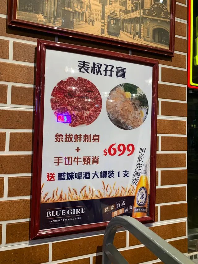 表叔孖寶: 象拔蚌刺身+手切牛頸脊 $699 送藍莓啤酒大支裝一支