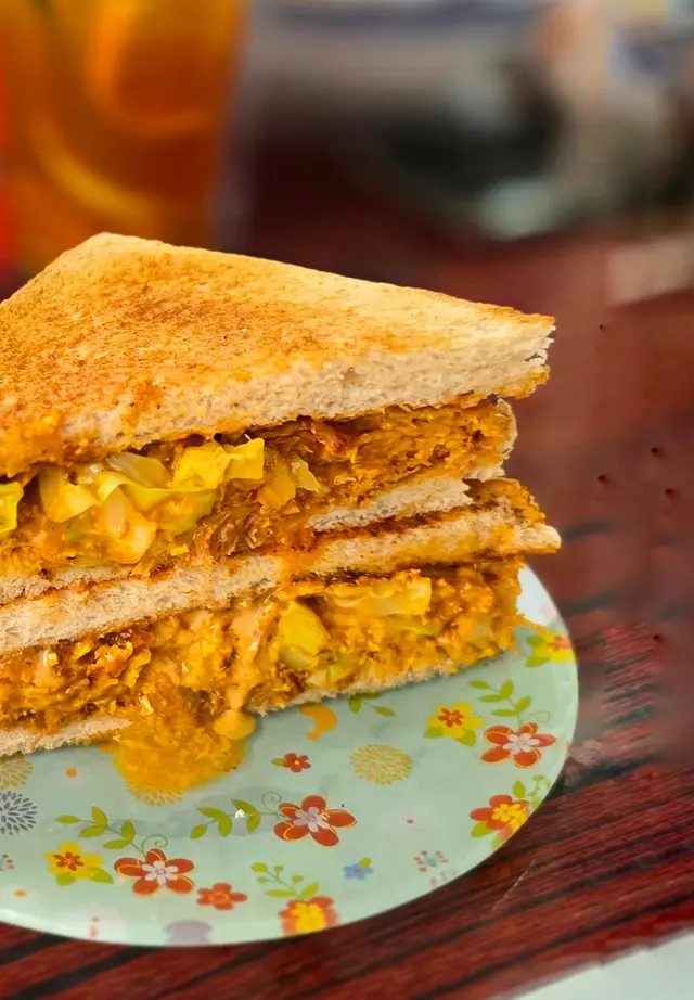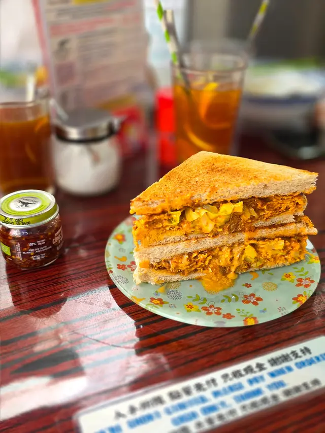 咸牛肉炒蛋三文治(椰菜+花生醬)