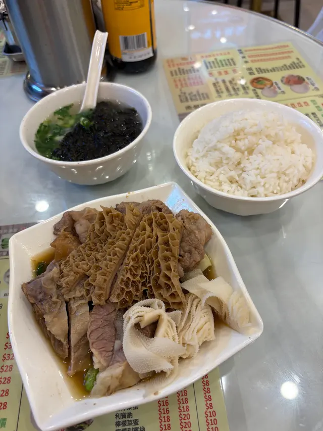 【旺角裕記牛雜魚蛋粉麵】 地鐵站旁呢間小店真係抵食之選!$28就有碗粉麵,加碟菜同飲品都唔使$60,份量足味道好,絕對係窮人恩物~ 魚蛋米魚蛋彈牙有魚香,湯底清甜唔會過鹹,米粉吸湯又爽滑。性價比超高! 腐乳通菜通菜新鮮翠綠,腐乳醬濃郁惹味,拌得均勻又唔會太鹹。雖然係小碟但份量唔少,爽口解膩,配粉麵一流。 熱奶茶茶味濃滑,奶香平衡,入口順喉冇苦澀味。以街坊小店來說沖得相當有水準,熱飲風味更突出。 總結:環境雖然普通,但食物質素對得住價錢,上菜速度快,趕時間或想慳錢食飽肚絕對值得試! #旺角美食 #魚蛋粉 #平民飯堂 #窮人恩物 #街坊小店…查看更多