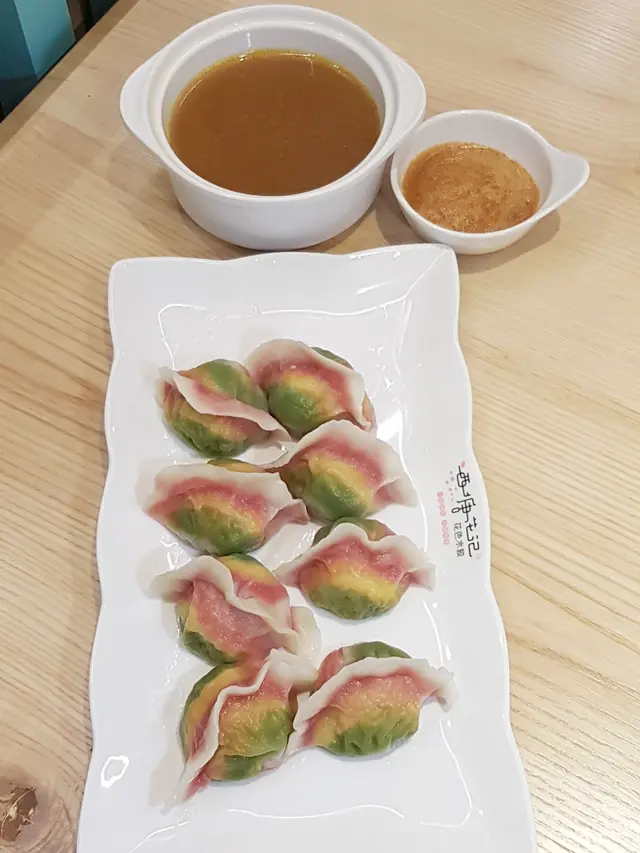 朋友留意左這間好耐就話不如一起試下這間入到餐廳 感覺寬敞🌸佈置好有特色 感覺幾有詩意Weekend 中午時段人流唔算多🥟雨花石水餃 ($72/8隻)賣相好靚 色彩繽紛 水餃皮採用左3 種蔬果汁 紅莧菜火龍果汁 菠菜汁 南瓜汁全部採用100% 蔬菜汁 無任個色素唔太食到蔬菜汁的味道 皮的厚度剛剛好 饀料唔太濃味 有些淡但會有少少馬蹄爽口口感🥦翡翠三鮮水餃 (灼餃- $45/6隻)水餃皮採用菠菜汁 饀料是蝦仁 雞蛋和韭菜不太濃菜味 味道都是比較清🍝肉燥撈麵 ($56)肉燥份量不算多 汁料不太夠 比較普通 這間店不太適合重口味朋友適合喜歡健康食物的女士🤣…查看更多