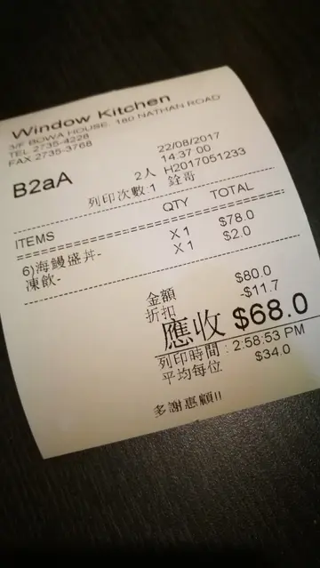尖沙咀性價比高的日式午餐。 2017年08月22日 下午兩點半行過尖沙咀彌敦道近山林道一幢商業大厦門口,見有一個廣告板,寫住午餐餐單,註明兩點後八五折結帳。當時肚仔餓,抱住一試無妨的心態入去,坐低後,先上ㄧ壼綠茶,叫左個6號餐 - 海鰻盛丼。前菜:麵豉湯+三文魚壽司一件,再來兩件鰻魚沙律卷(條鰻魚攤手掌咁長),再加一碗鰻魚飯,最後重有餐茶。份量十足,味道美味,價錢$78,凍飲+$2,無加一,八五折後埋單$68,性價比高高高 (((