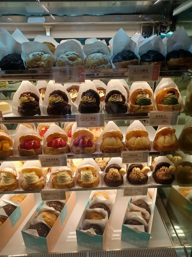 三款入面最驚喜,第一啖已經聞到淡淡玫瑰香,唔係嗰種假香精味,係好自然嘅花香。中間嘅忌廉酸酸甜甜,紅桑子同荔枝都好突出,層次豐富。夏天食真係好清新,冇負擔感🍑白桃乳酪泡芙