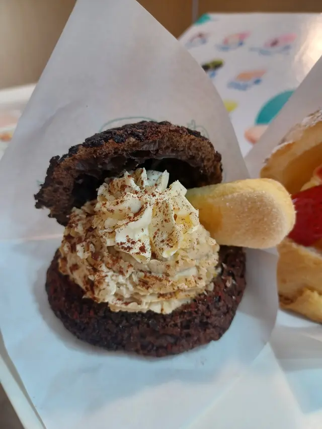 甜度相對高少少,但唔會膩,係果香味好重嗰種甜,似食緊白桃優格。忌廉口感滑,外皮係脆脆微酥型,幾有口感🥭芒果乳酪泡芙