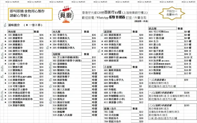 覓廚 (香港仔) 網址: https://s.openrice.com/QrbS0W1K700 地址: 香港香港仔香港仔大道120號百匯行11樓 電話: +852 67911855
